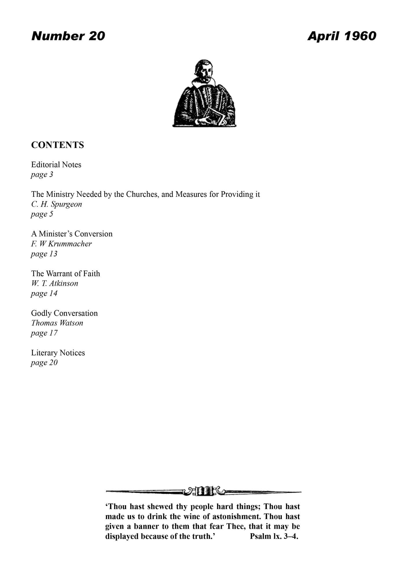 | Ministry Needed by the Churches and measures for providing it — Spurgeon, C H | 5-18 |