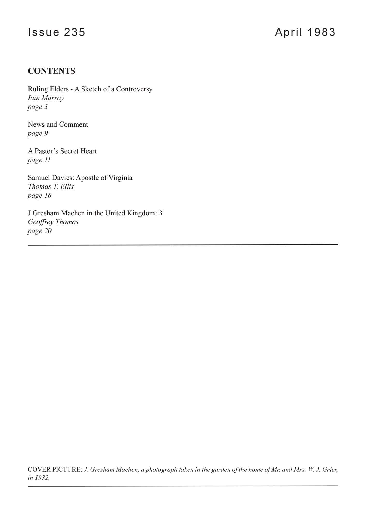 | J. Gresham Machen in the United Kingdom (3) — Thomas, Geoffrey | 28-32 |