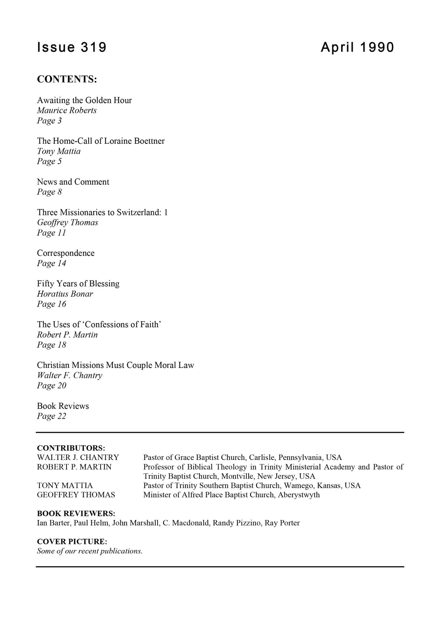 | Christian Missions Must Couple Moral Law with Gospel — Chantry, Walter J | 26-27 |
