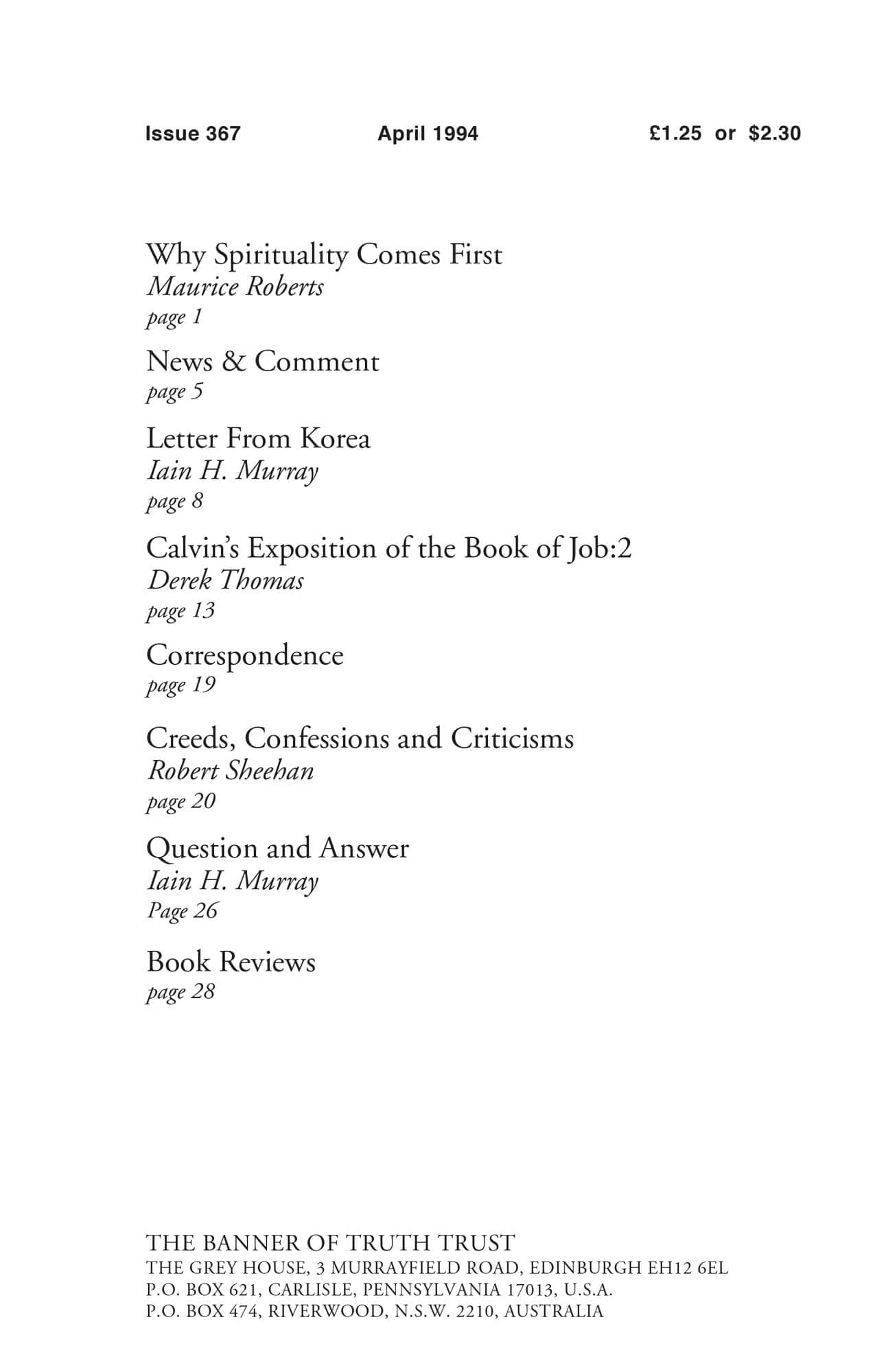| Letter from Korea — Murray, Iain H | 8-12 |
