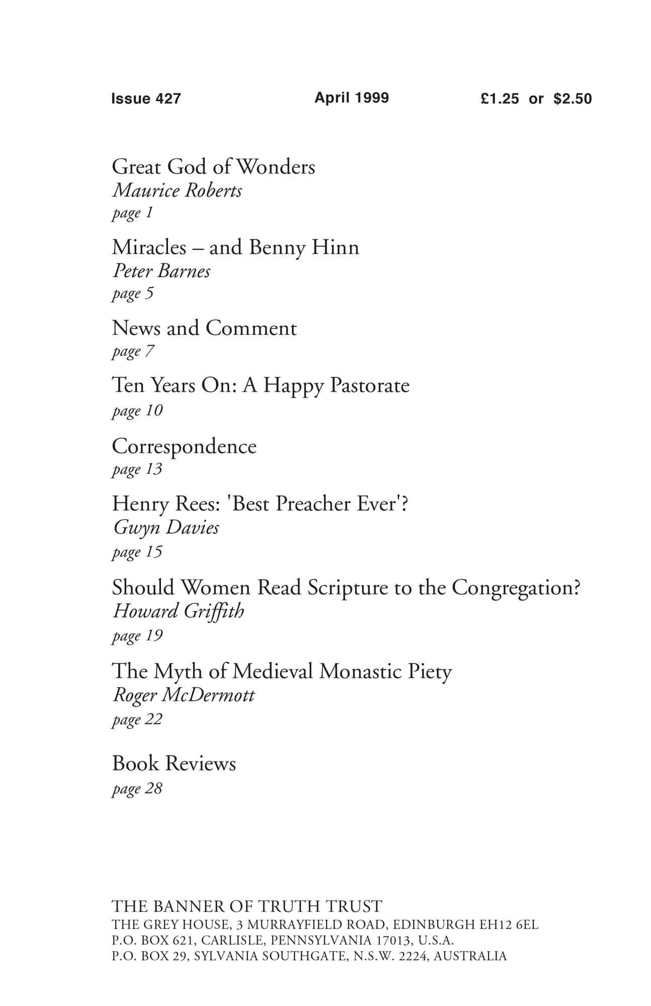 | Should Women Read Scripture to the Congregation? — Griffith, Howard | 19-21 |