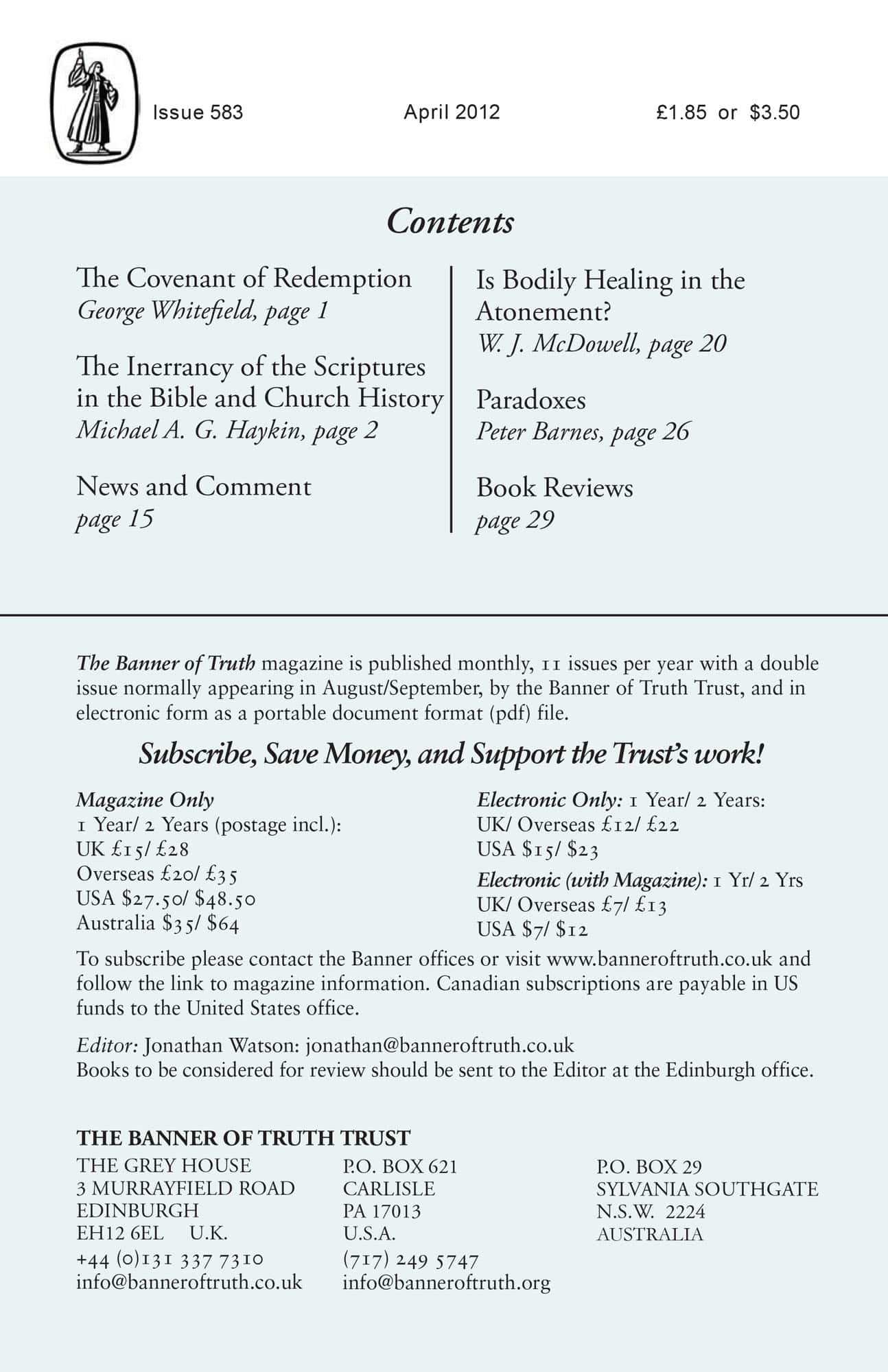 Subscribe to the Banner of Truth Magazine for 11 edifying issues each year (including summer double issue).