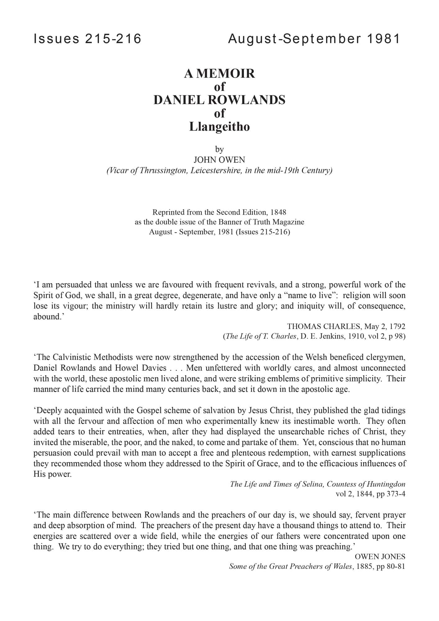 | Memoir of Daniel Rowlands of Llangeitho — Owen, John (#2) | 1-80 |