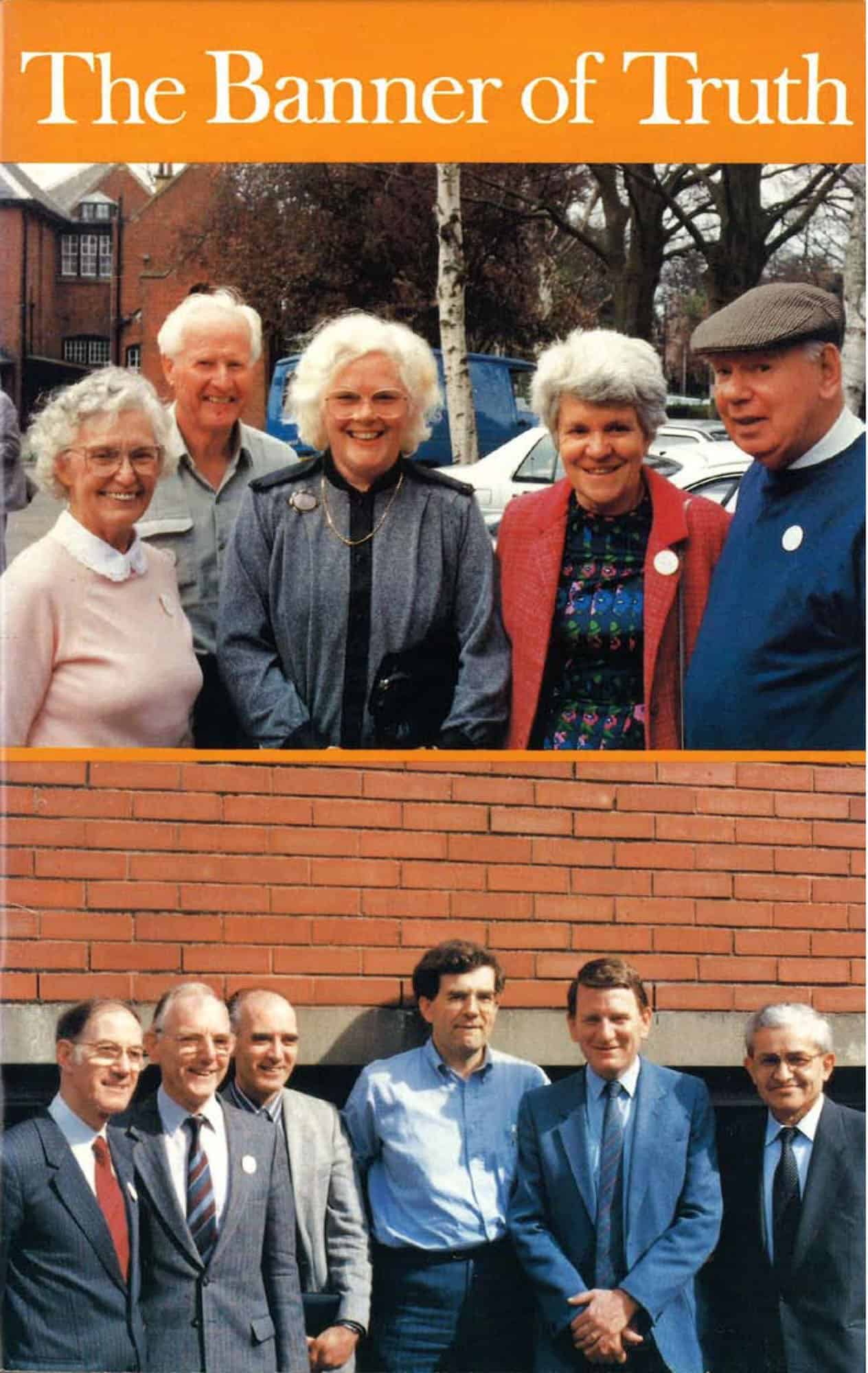 This binder holds two years’ issues and is made of stout board, with wire rods to hold the magazine in place. The name ‘Banner of Truth’ is stamped in gold on a black panel on the grey cloth.