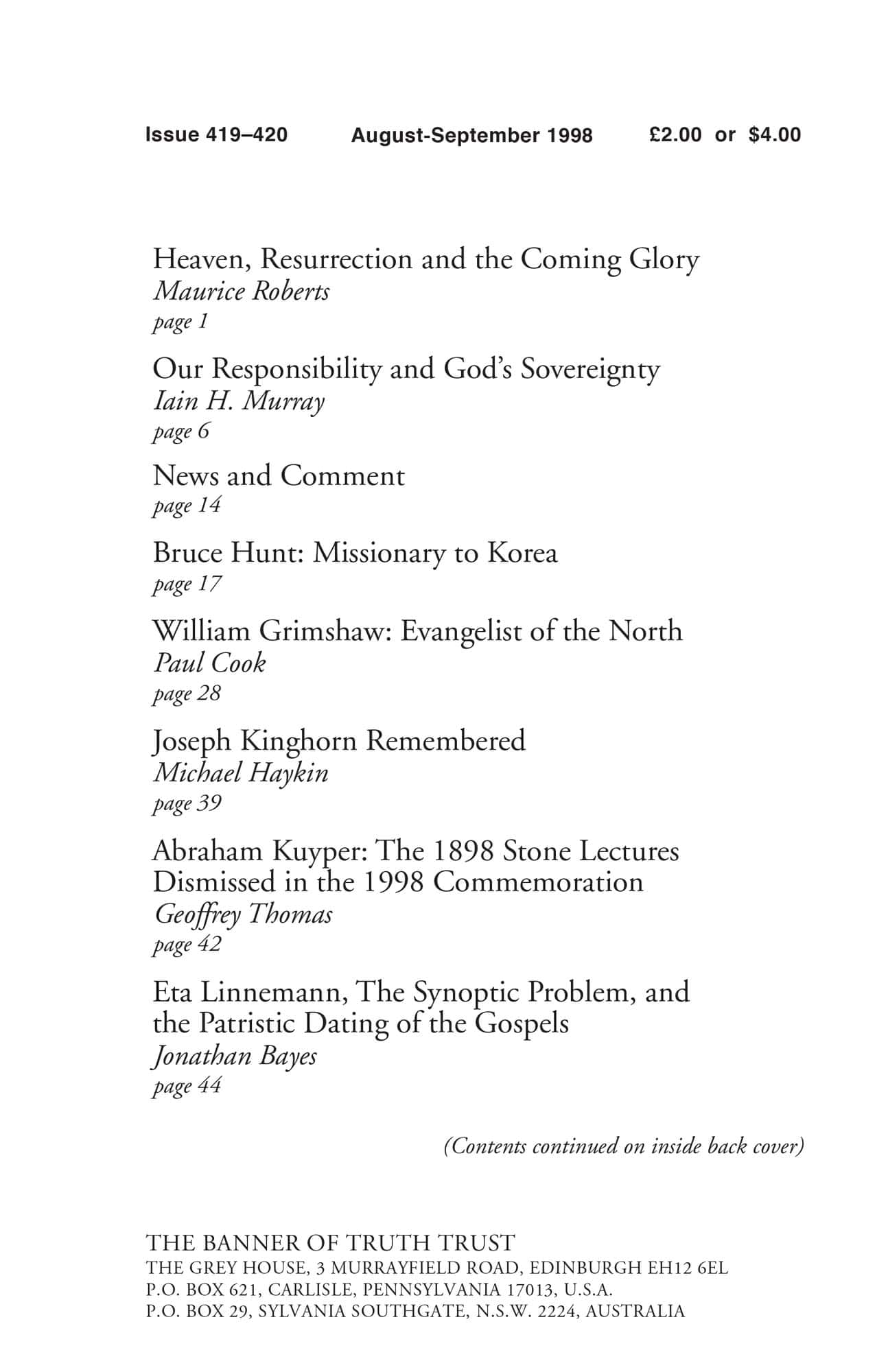 | Our Responsibility and God’s Sovereignty — Murray, Iain H | 6-13 |