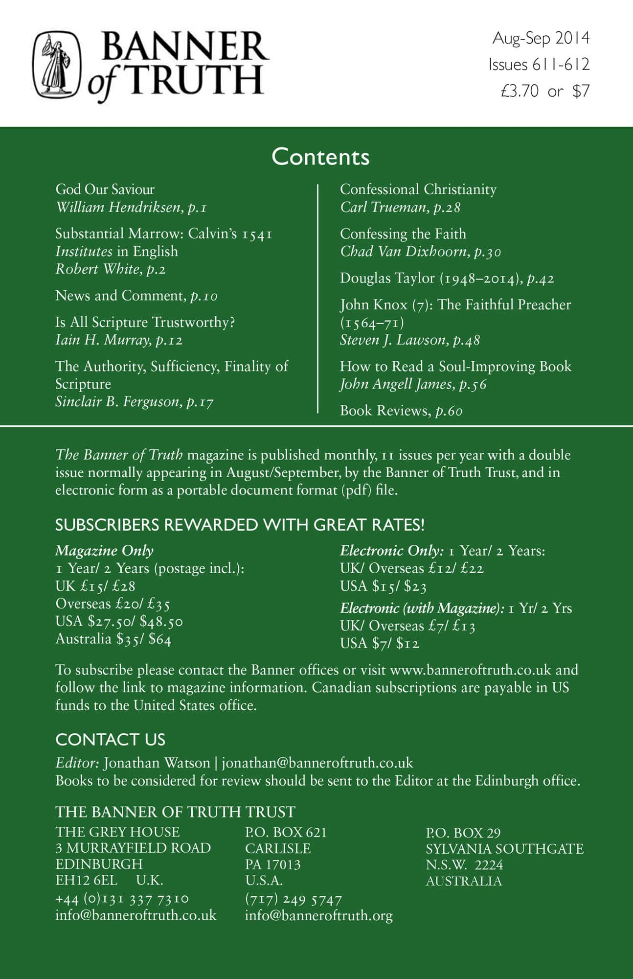 Subscribe to the Banner of Truth Magazine for 11 edifying issues each year (including summer double issue).