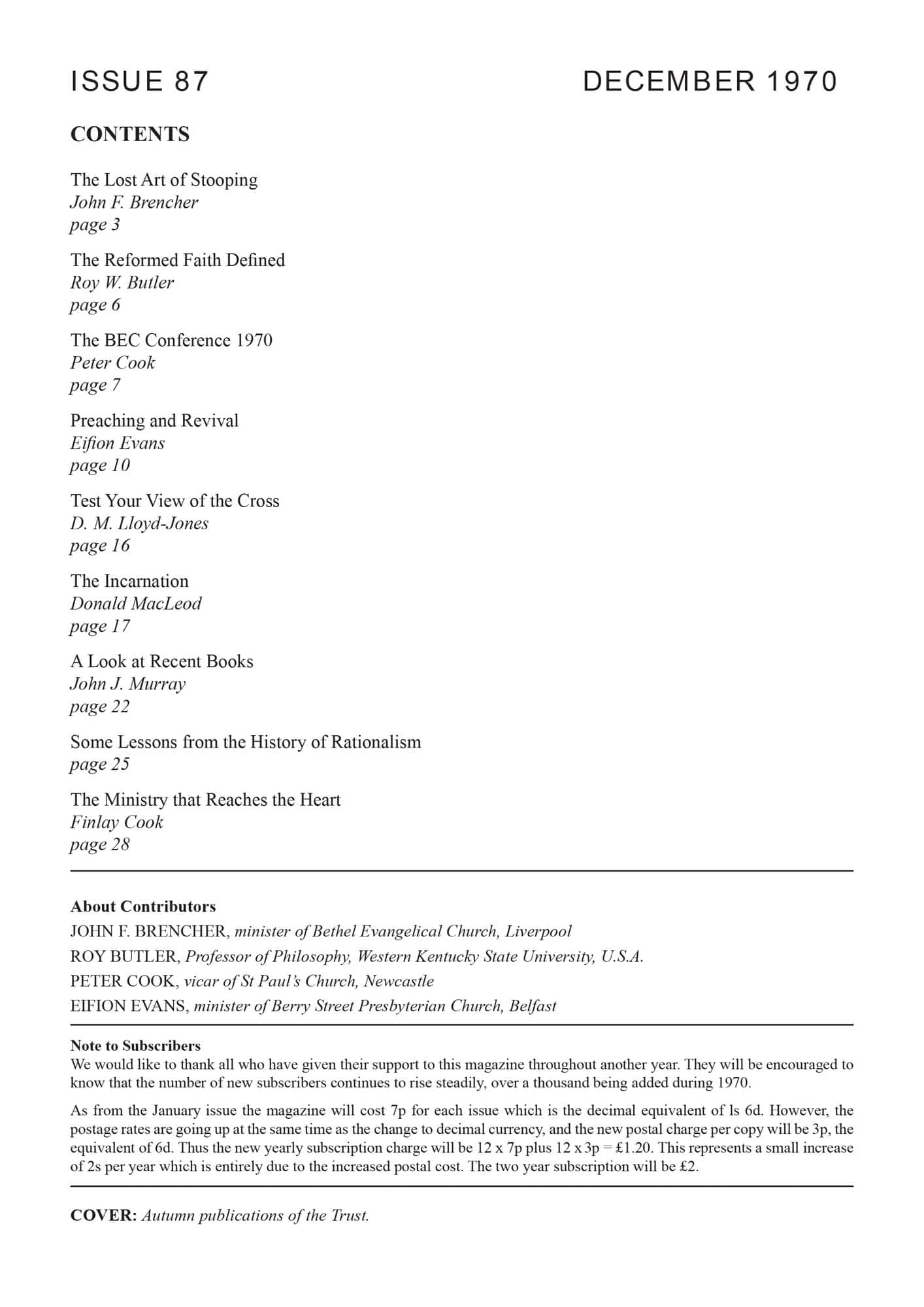 | British Evangelical Council Conference 1970: Impressions of an Anglican Evangelical — Cook, Peter | 7-10 |