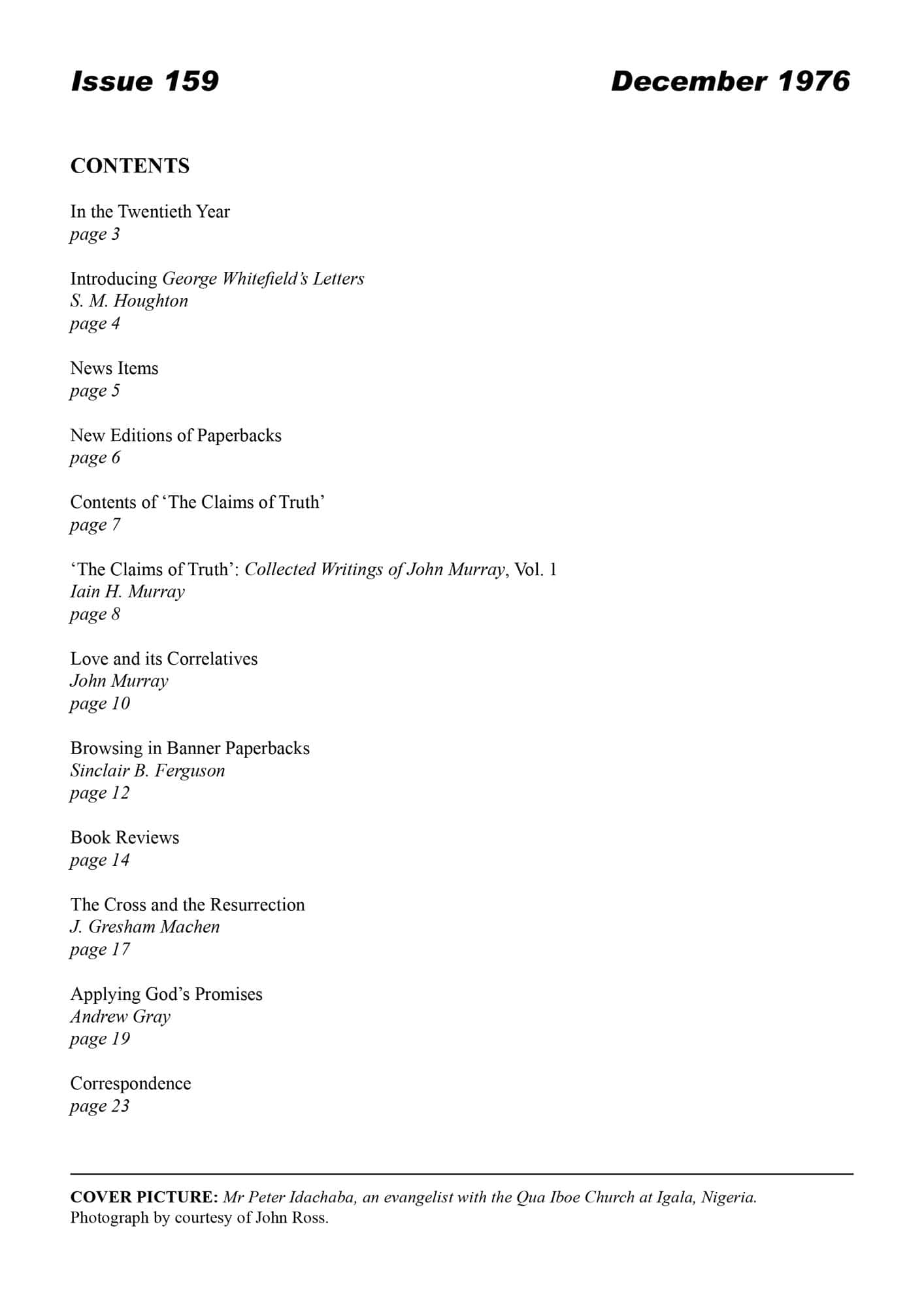 | Introducing George Whitefield’s Letters — Houghton, S M | 3-4 |
