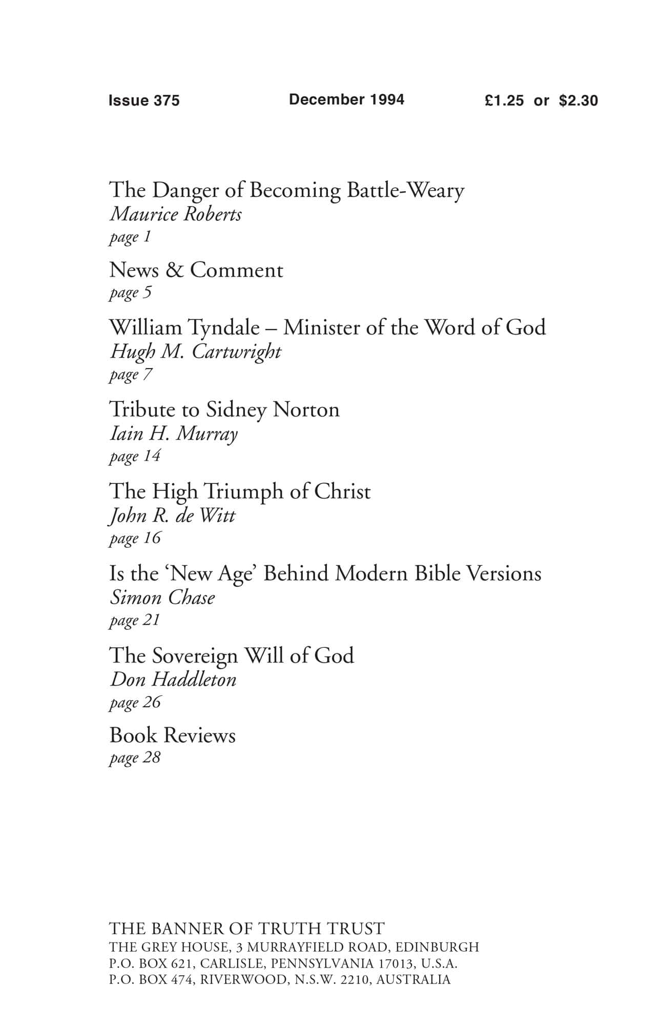 | Tribute to Sidney Norton — Murray, Iain H | 14-15 |