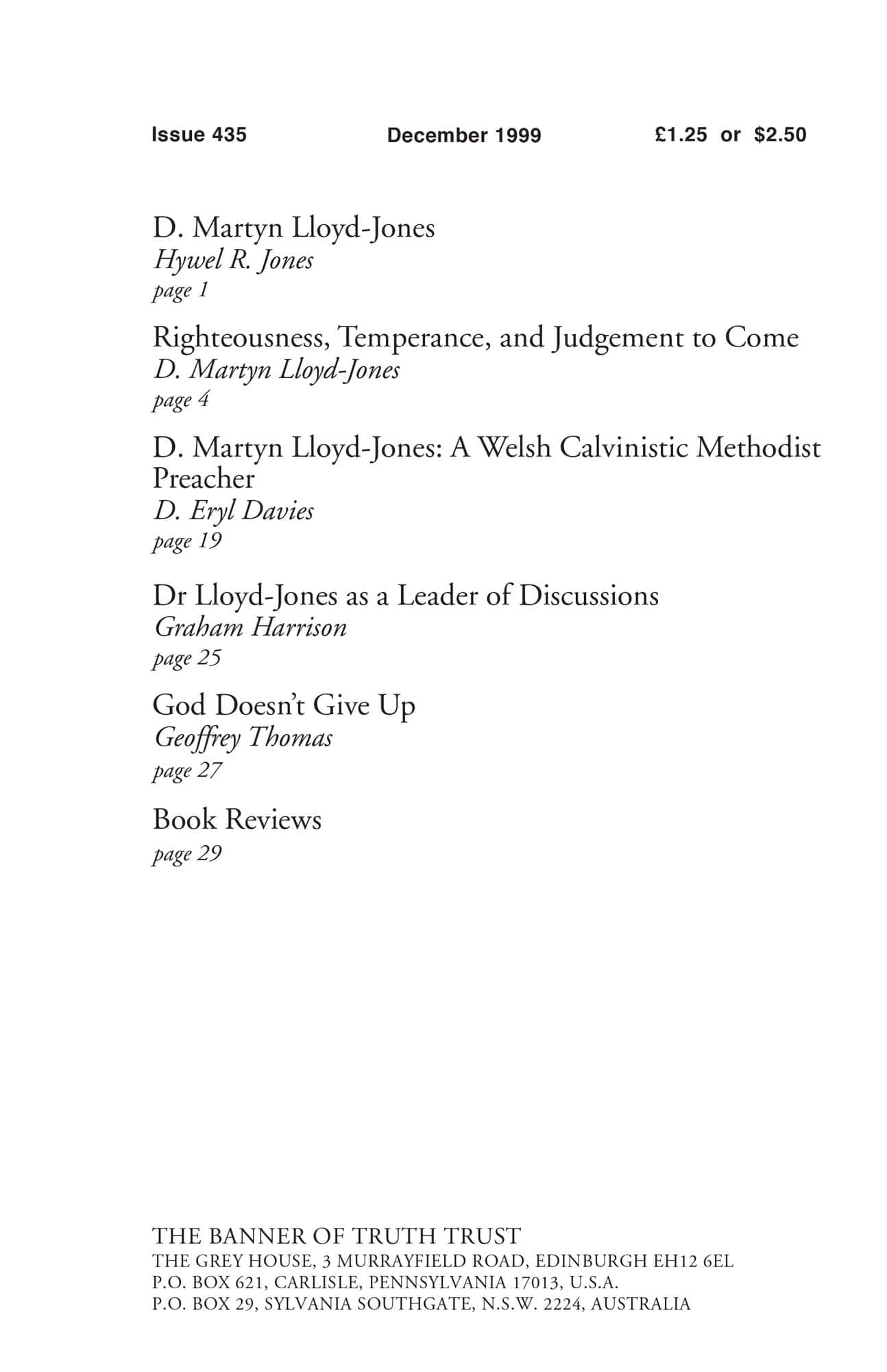 | Righteousness, Temperance, and Judgement to Come — Lloyd-Jones, D M | 4-18 |