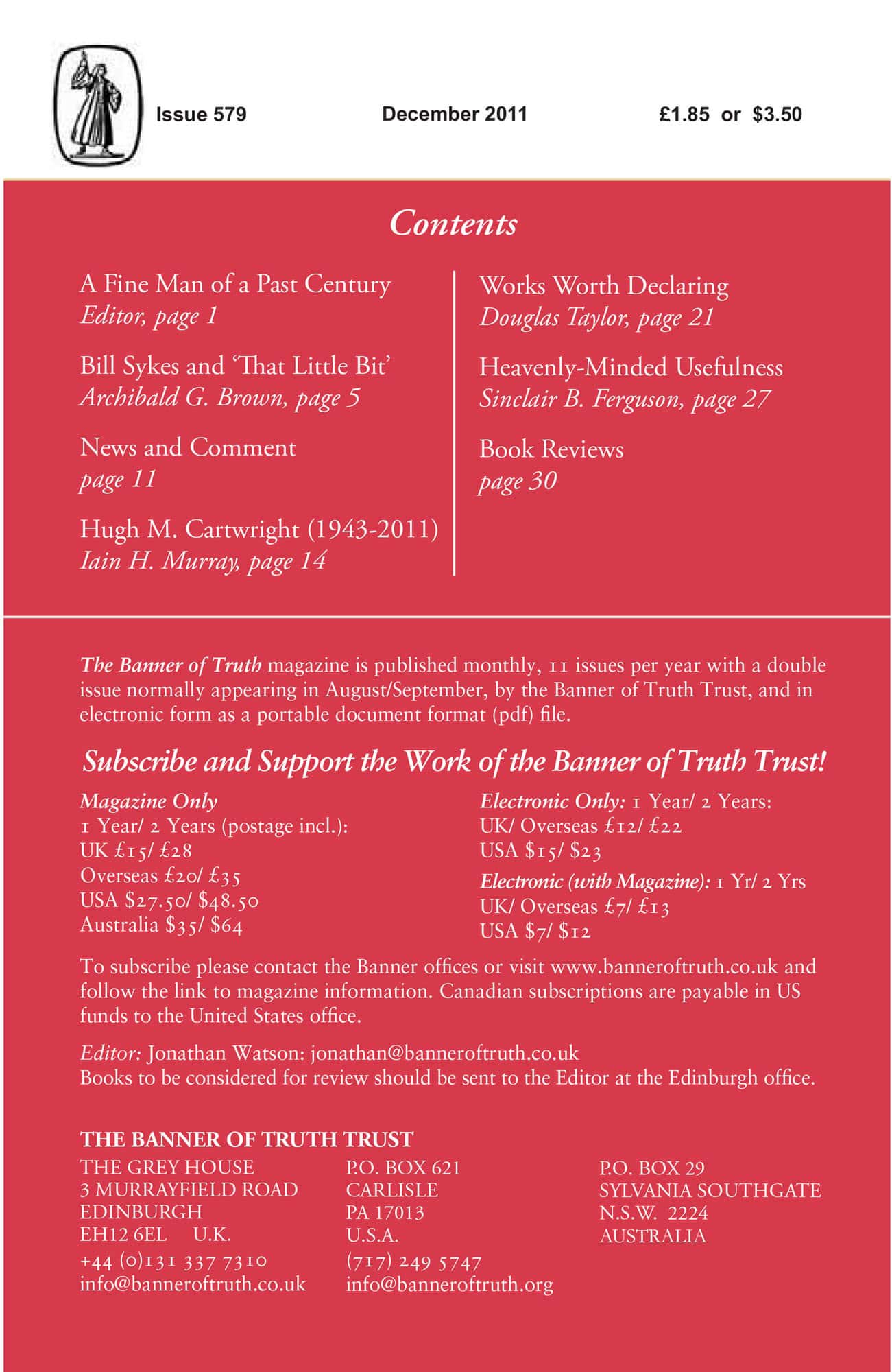 Subscribe to the Banner of Truth Magazine for 11 edifying issues each year (including summer double issue).