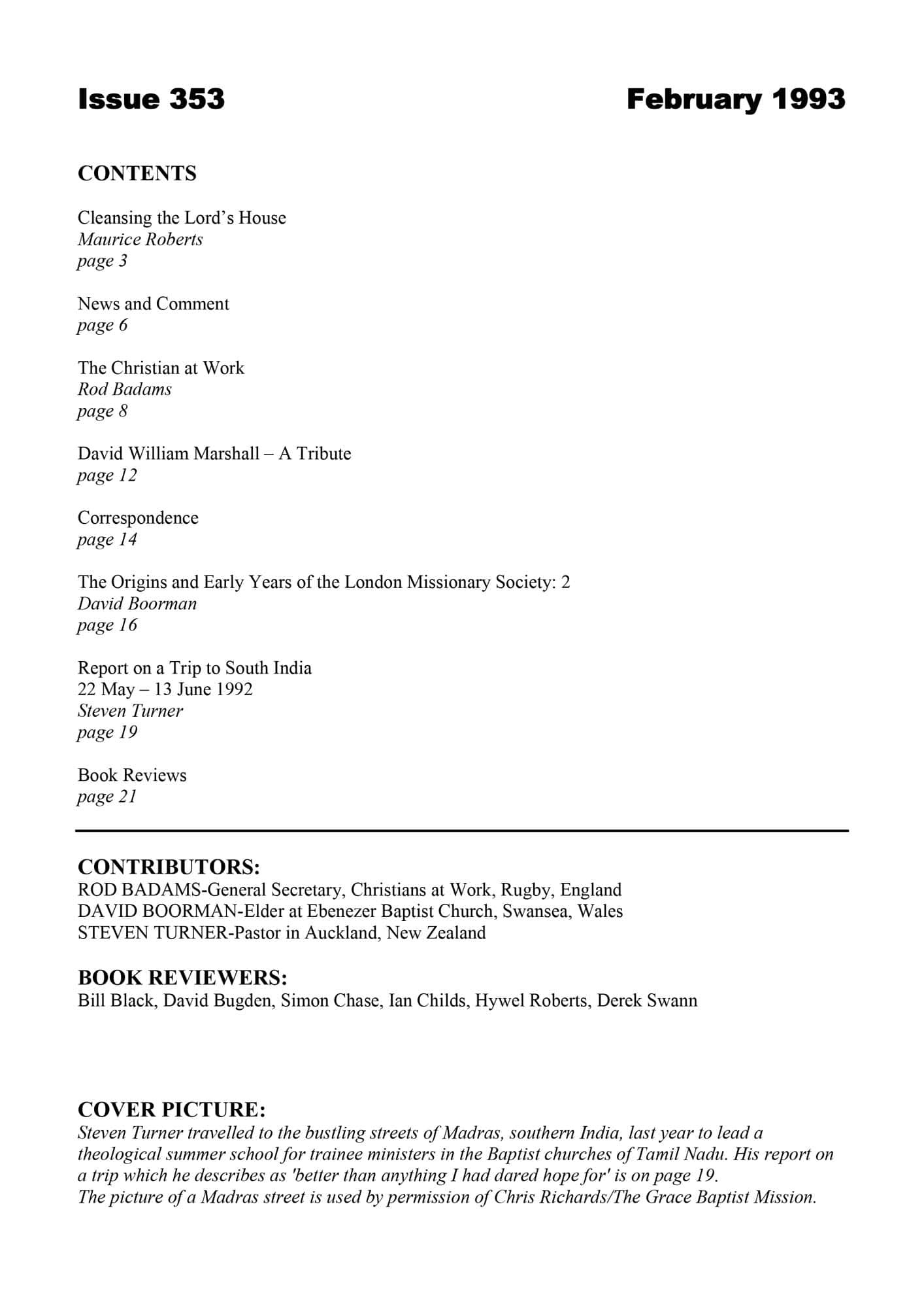 | Report on a Trip to South India: 22 May – 13 June 1992 — Turner, Steven | 25-27 |