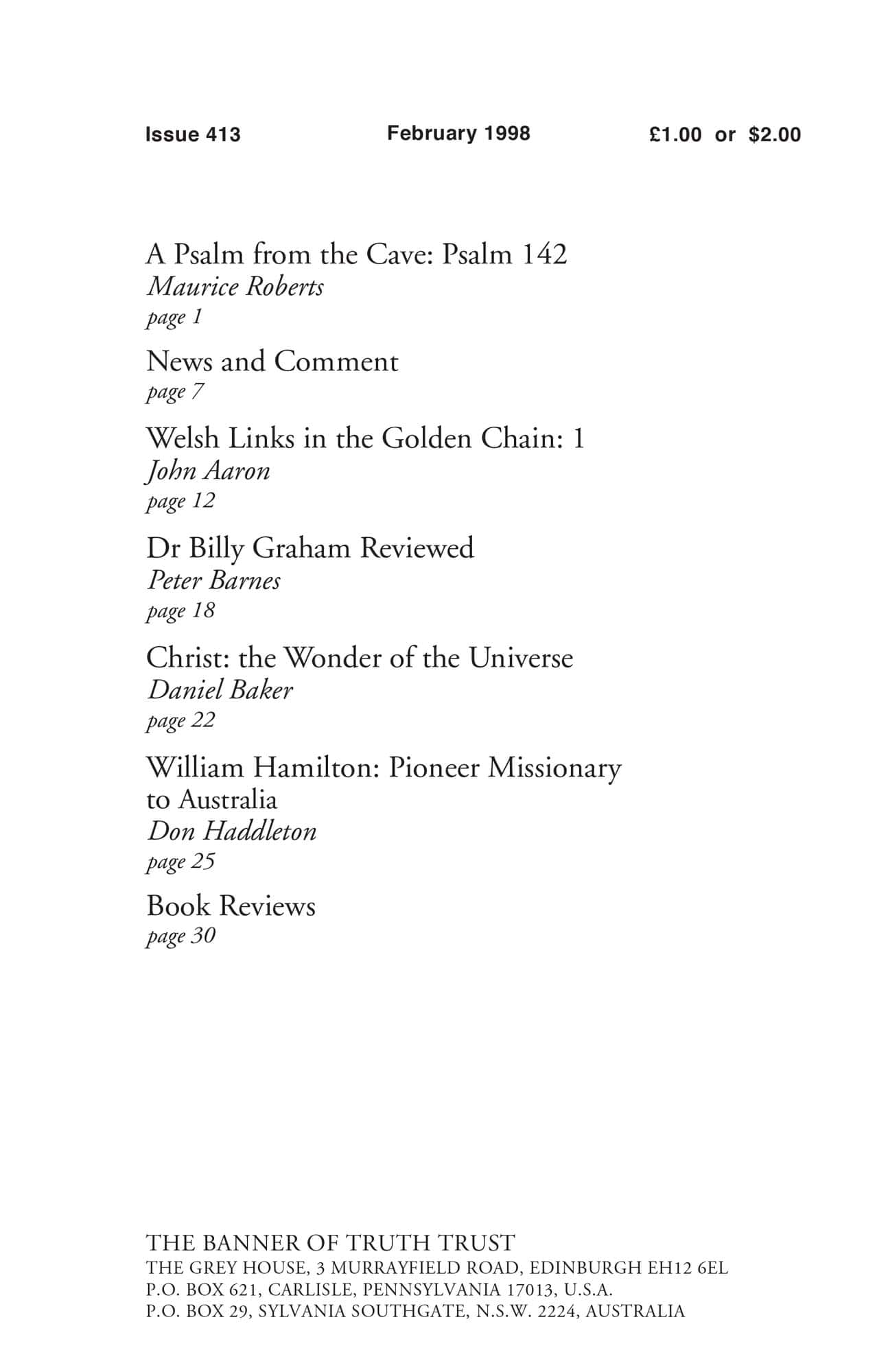| Dr Billy Graham Reviewed — Barnes, Peter | 18-21 |