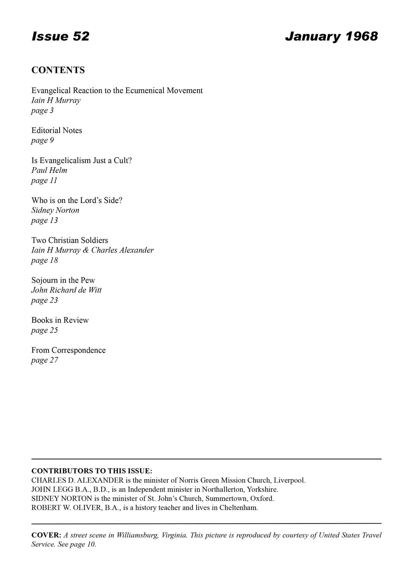 | Evangelical Reaction to the Ecumenical Movement in England — Murray, Iain H | 1-9 |