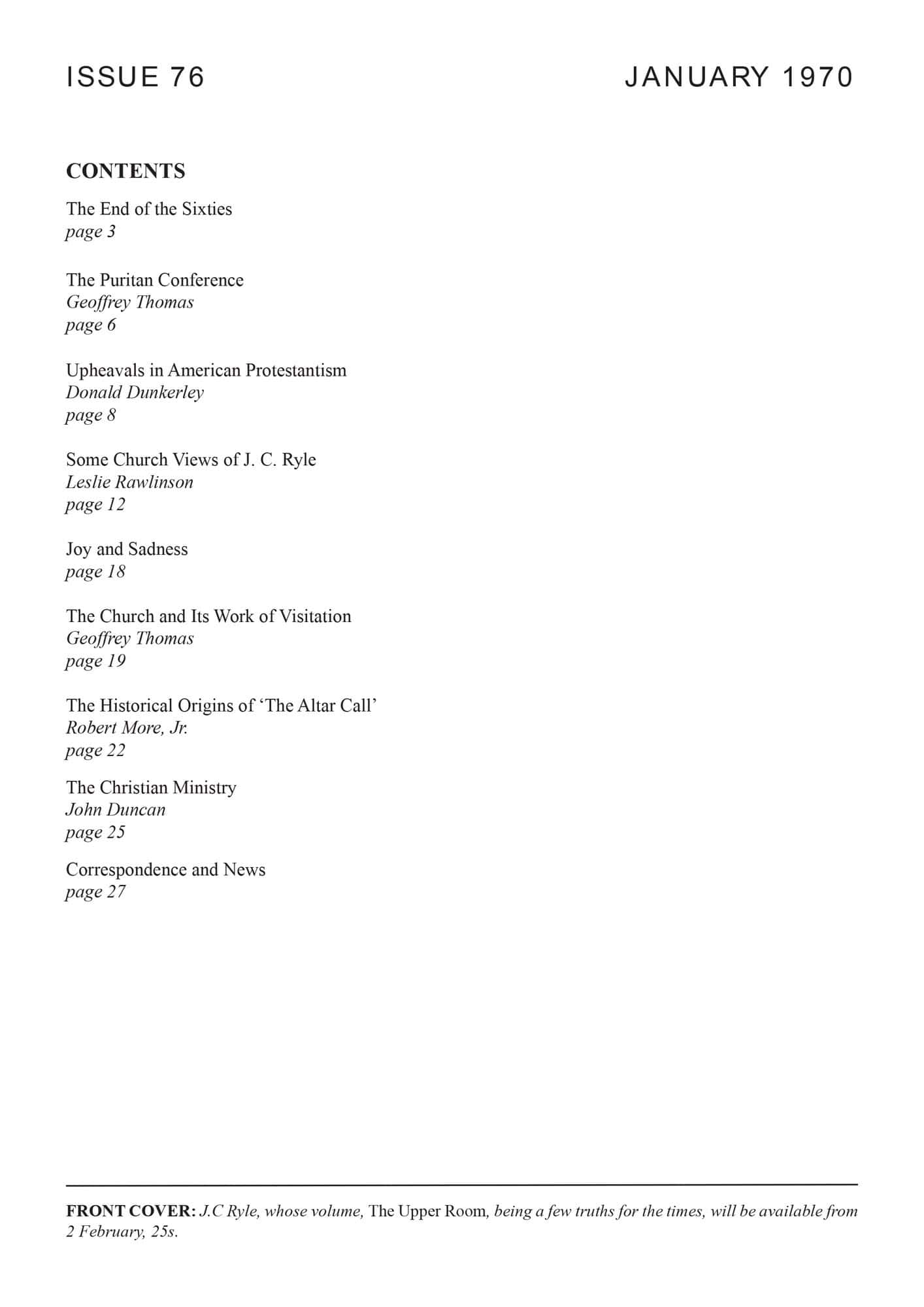| Puritan Conference 1969 — Thomas, Geoffrey | 6-8 |