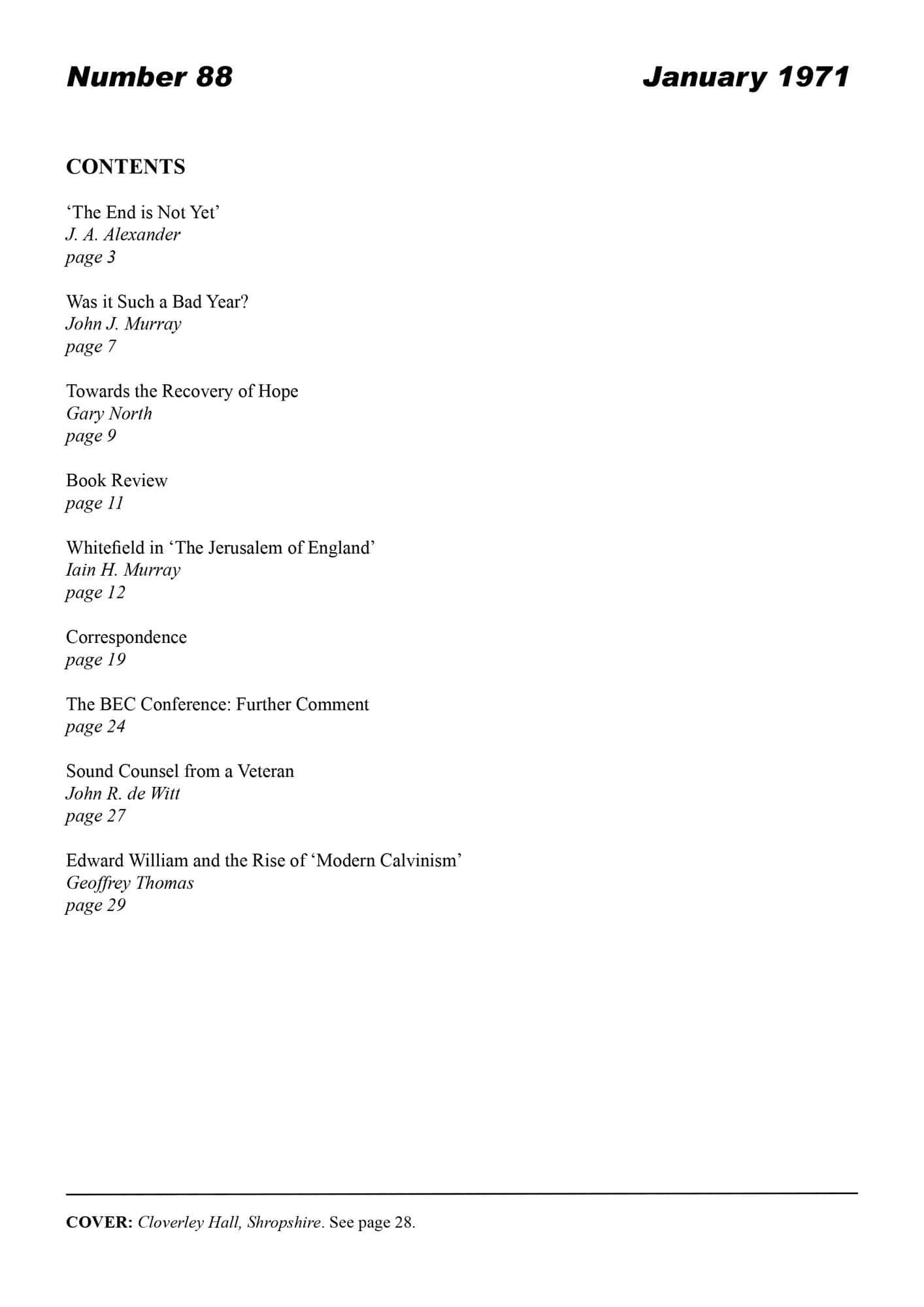 | Whitefield in the Jerusalem of England — Murray, Iain H | 17-28 |