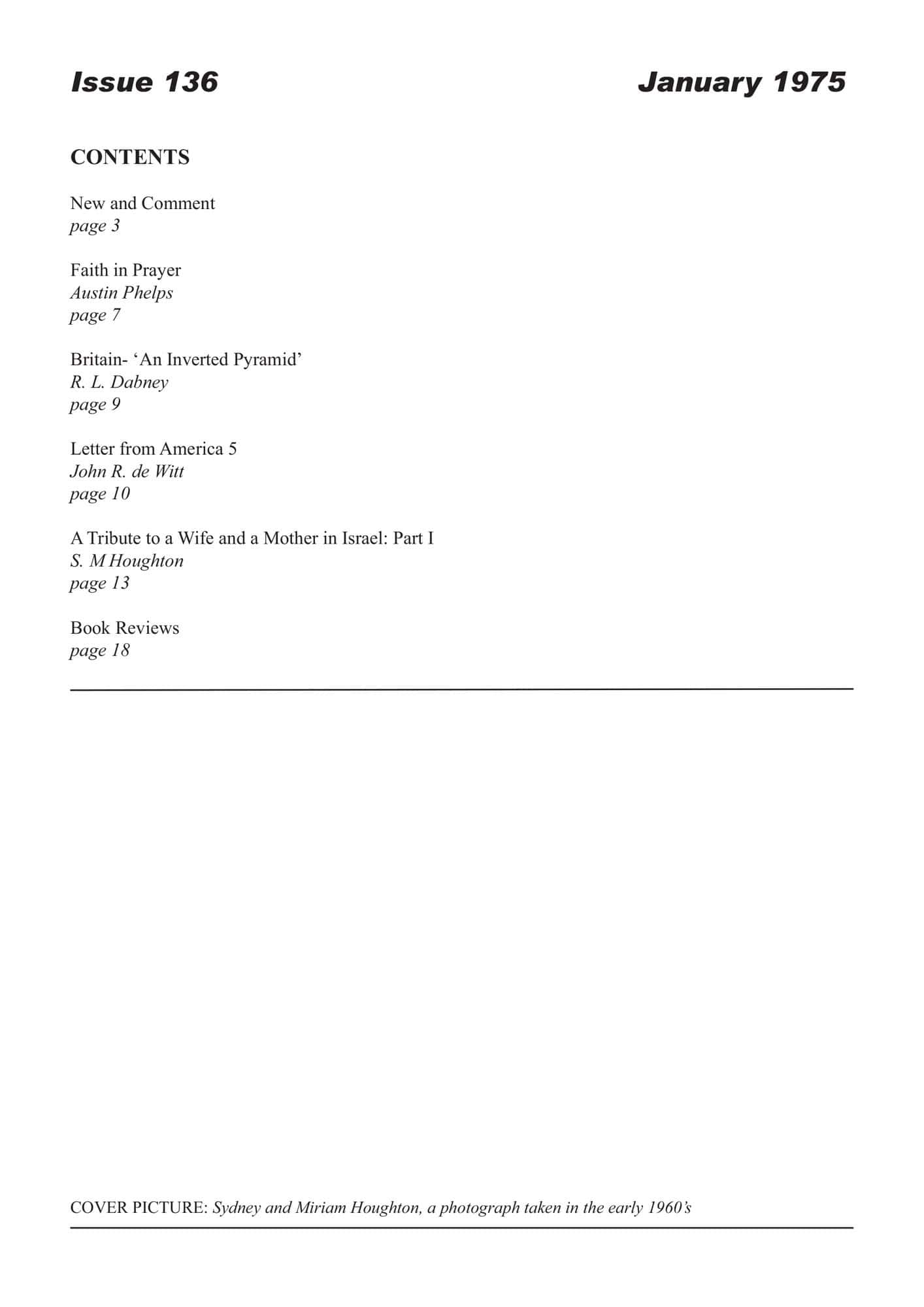| Letter from America: Visit to New England — De Witt, John R | 10-14 |