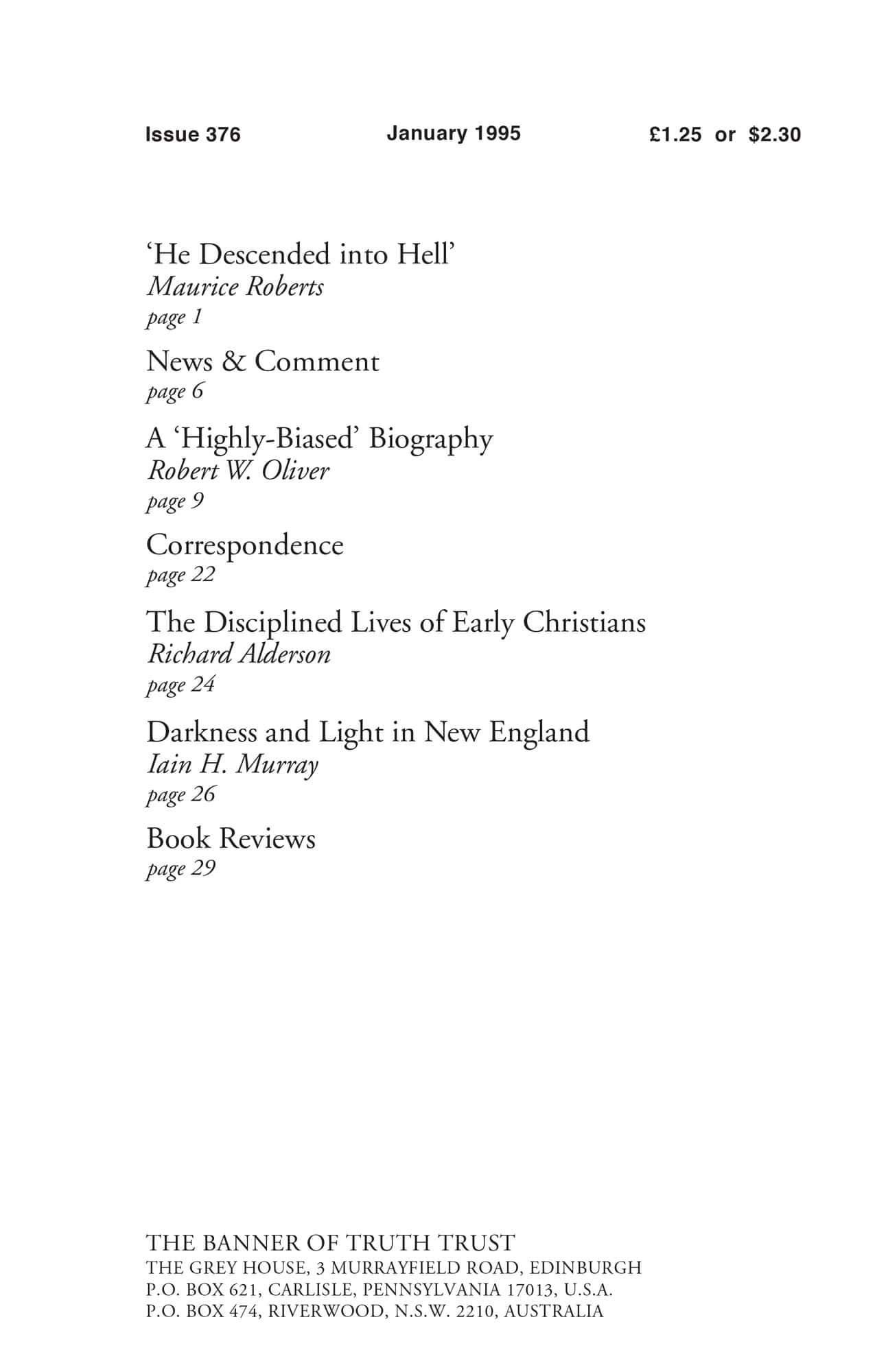 | Darkness and Light in New England Today — Murray, Iain H | 26-28 |