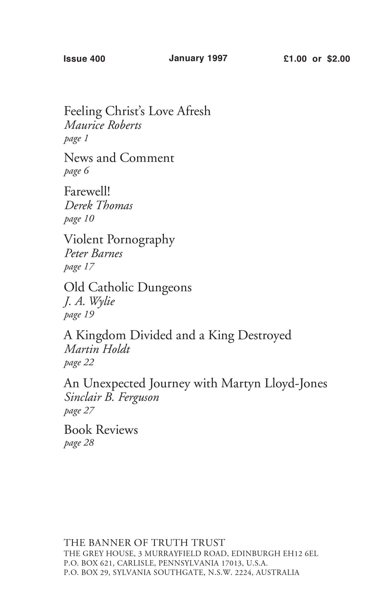 Subscribe to the Banner of Truth Magazine for 11 edifying issues each year (including summer double issue).