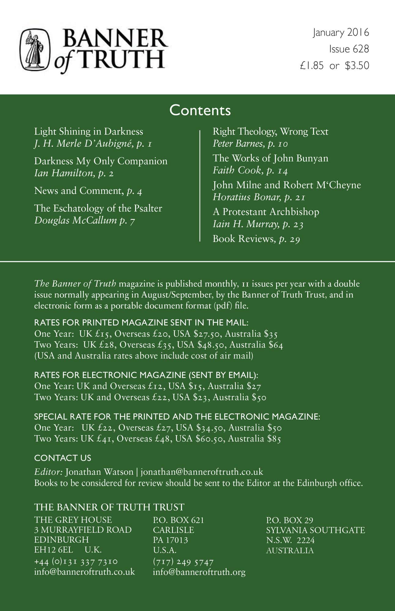 Subscribe to the Banner of Truth Magazine for 11 edifying issues each year (including summer double issue).