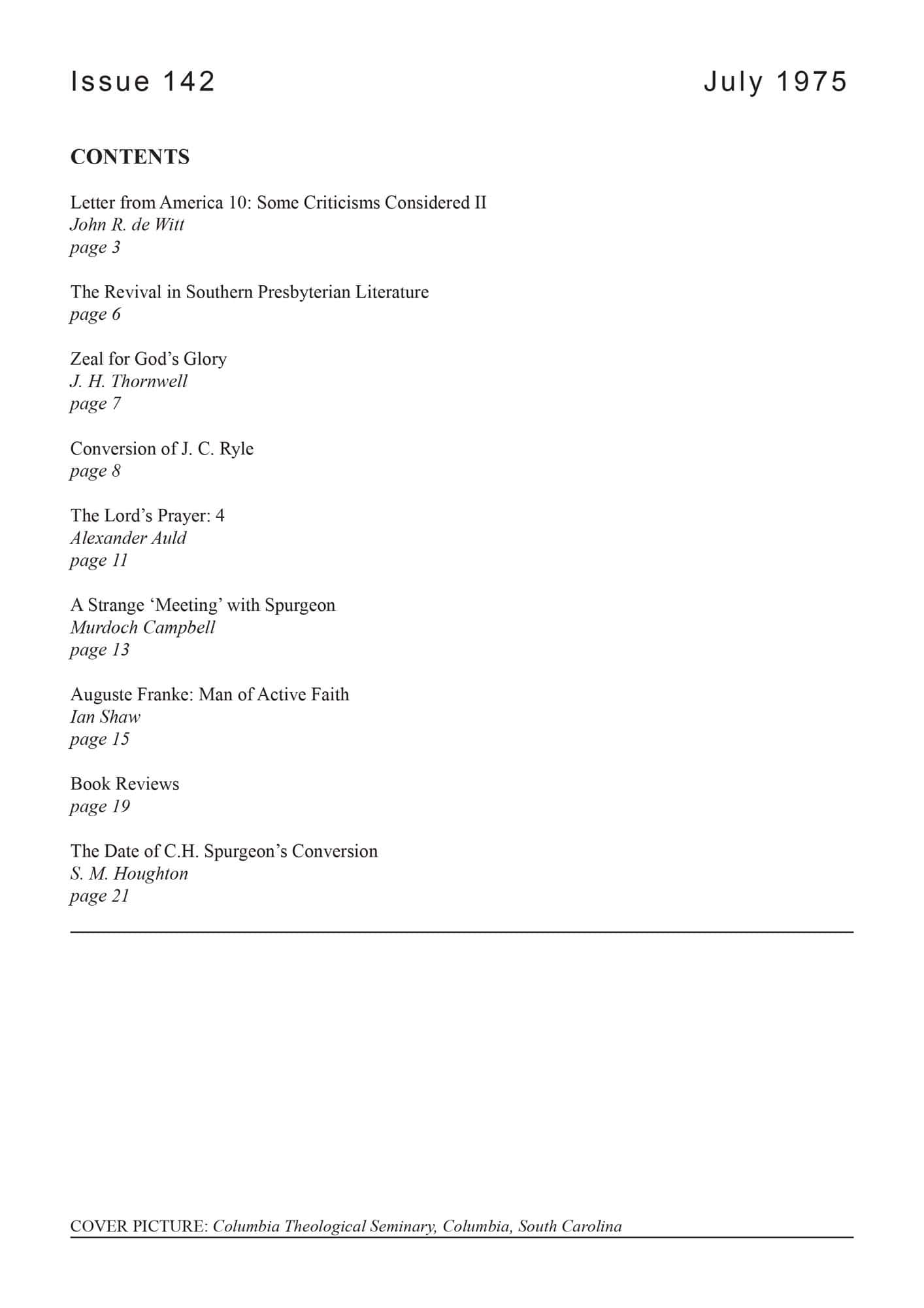 | Letter from America: some Criticisms of Reformed Ministry Considered (2) — De Witt, John R | 1-6 |