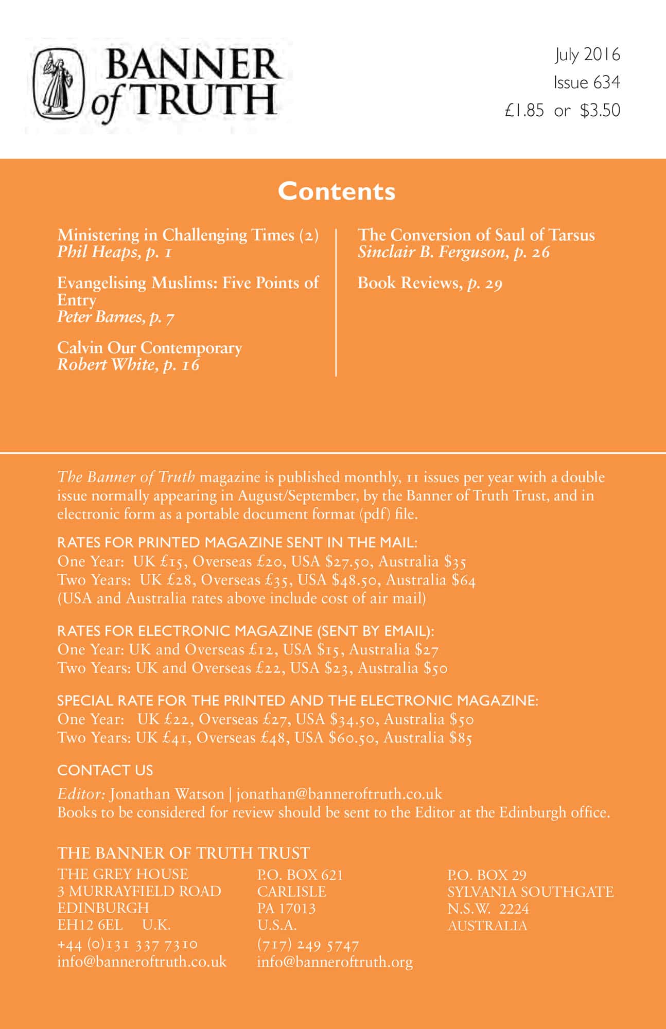 Subscribe to the Banner of Truth Magazine for 11 edifying issues each year (including summer double issue).