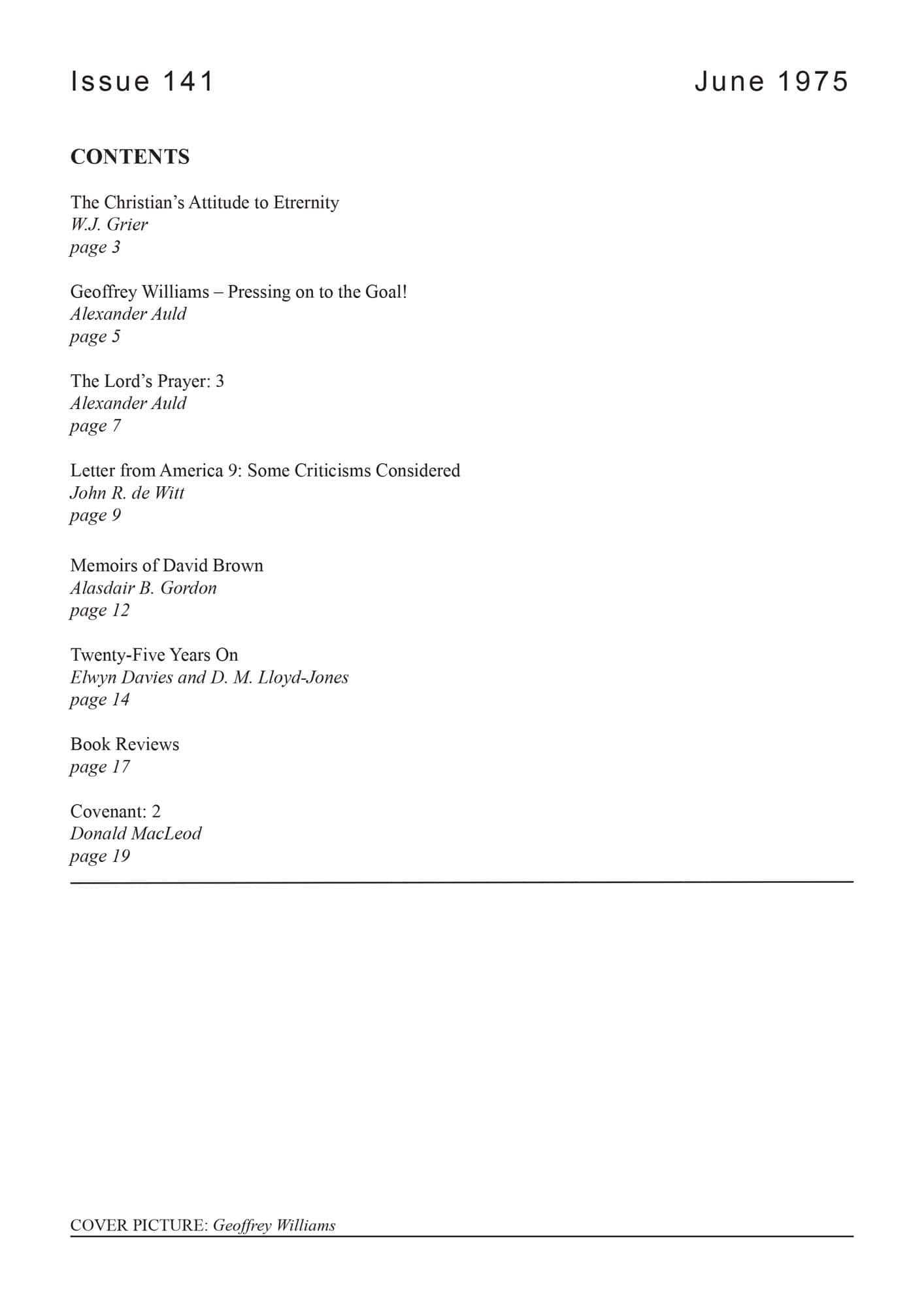 | Geoffrey Williams: Pressing on to the Goal — Murray, Iain H | 4-5 |