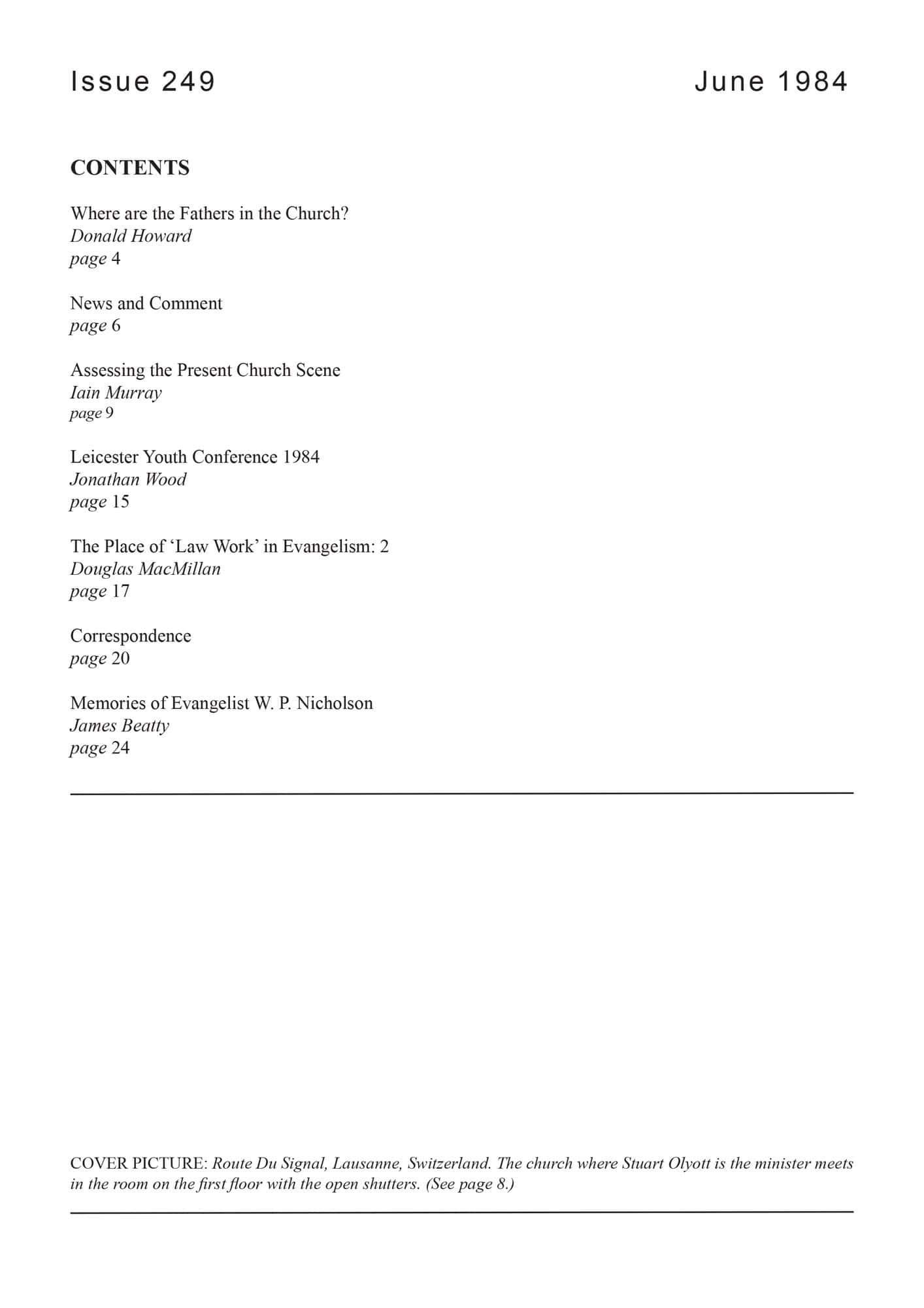 | Assessing the Present Church Scene — Murray, Iain H | 7-17 |