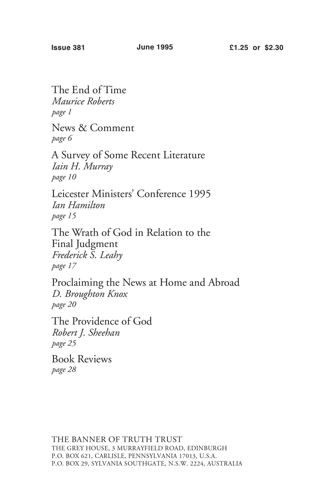 | Survey of Some Recent Literature — Murray, Iain H | 10-14 |