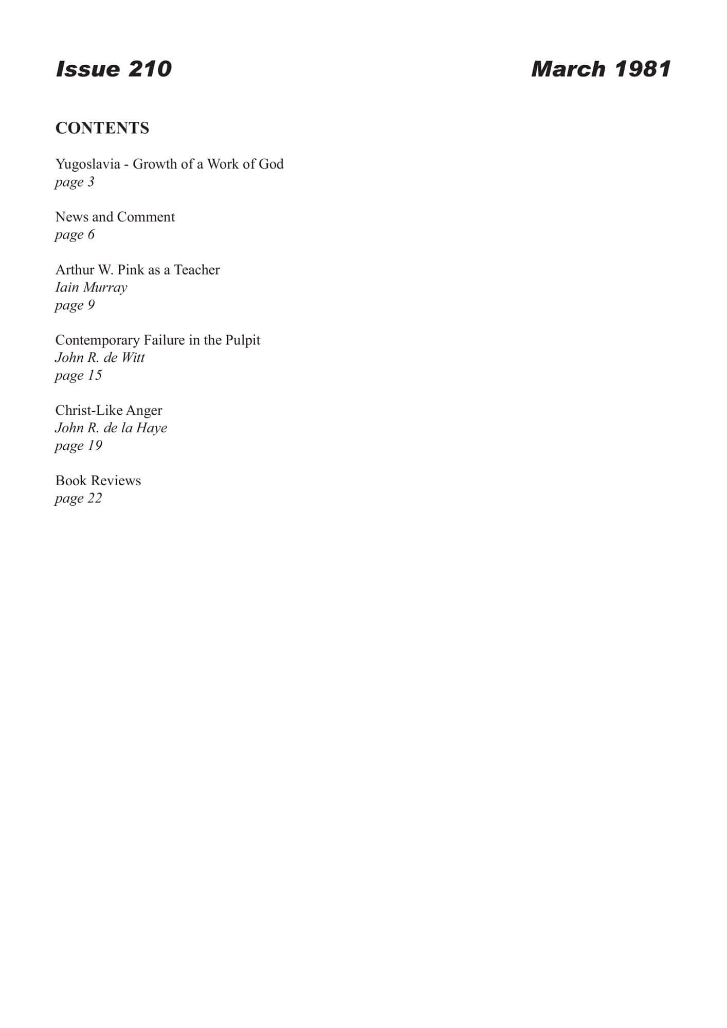 | Arthur W. Pink: A Voice in the Wilderness (4) — Murray, Iain H | 10-18 |