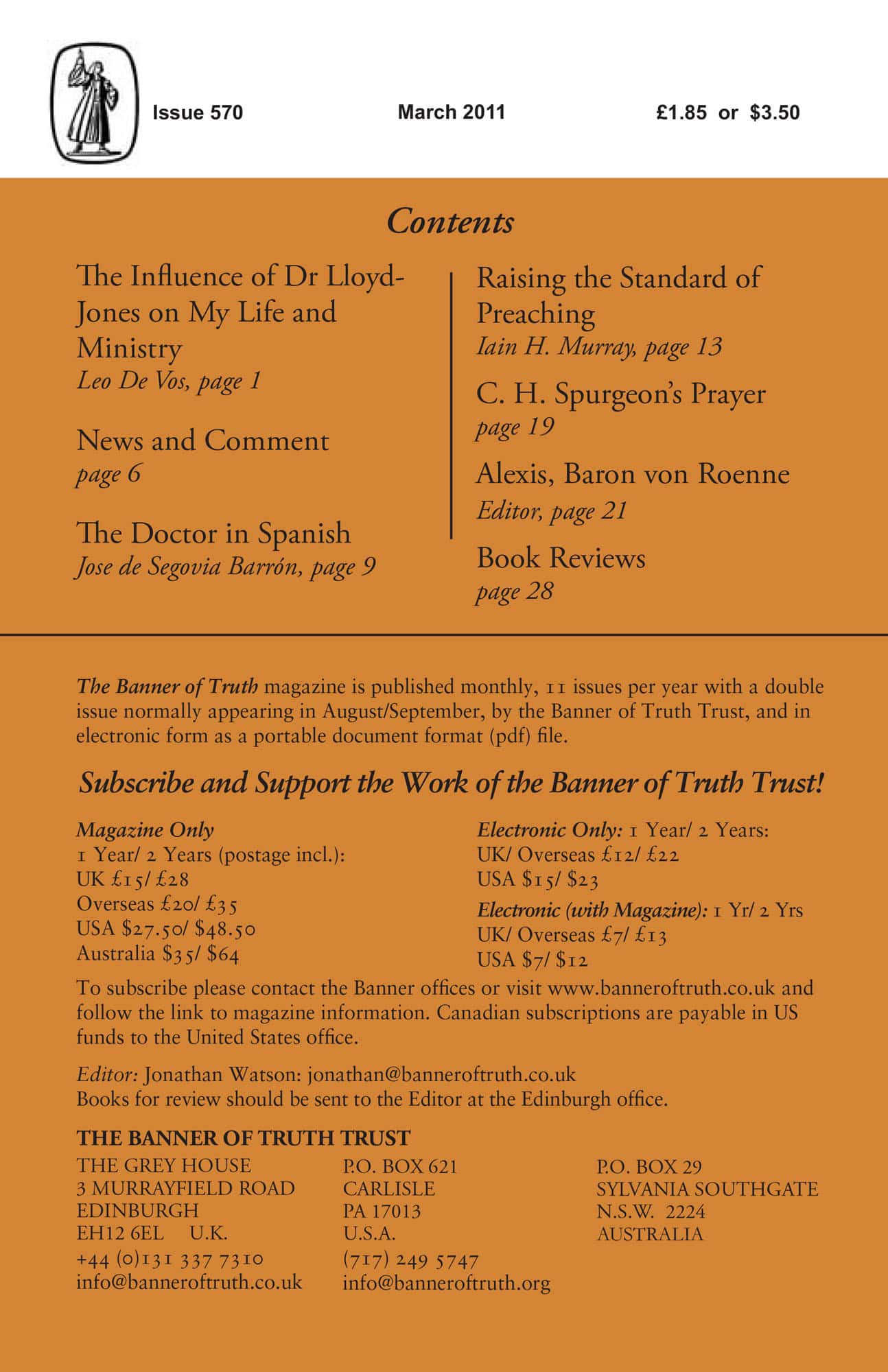| Influence of Dr Lloyd-Jones on my Life and Ministry — De Vos, Leo | 1-5 |