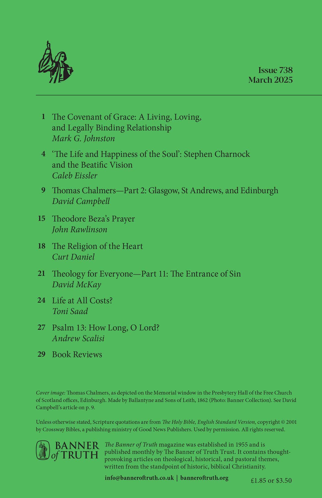 | Thomas Chalmers—Part 2: Glasgow, St Andrews, and Edinburgh — Campbell, David | 9-14 |