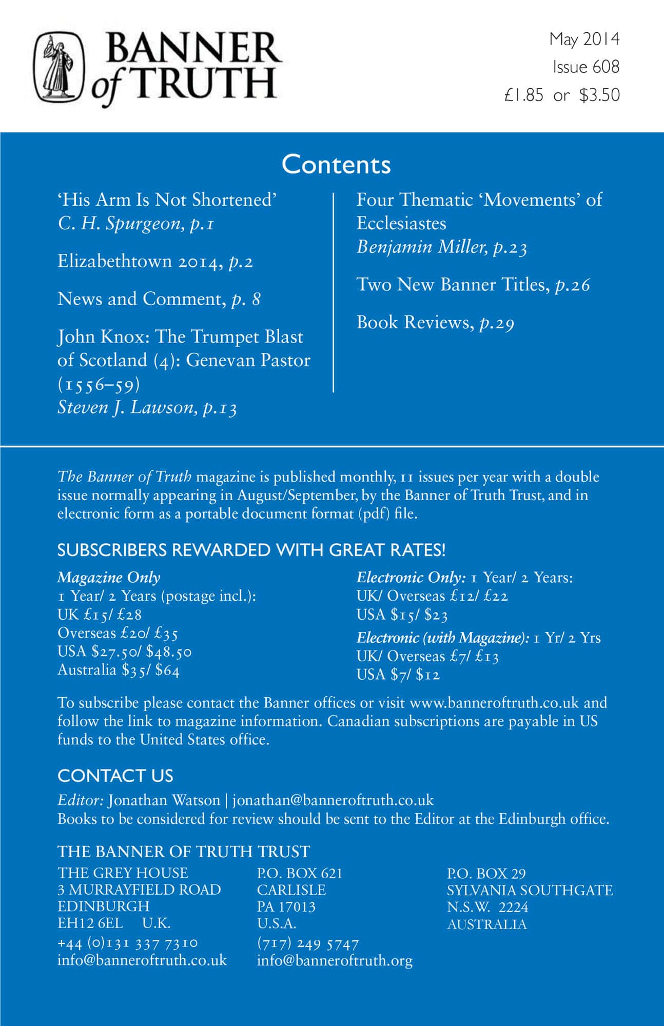 Subscribe to the Banner of Truth Magazine for 11 edifying issues each year (including summer double issue).