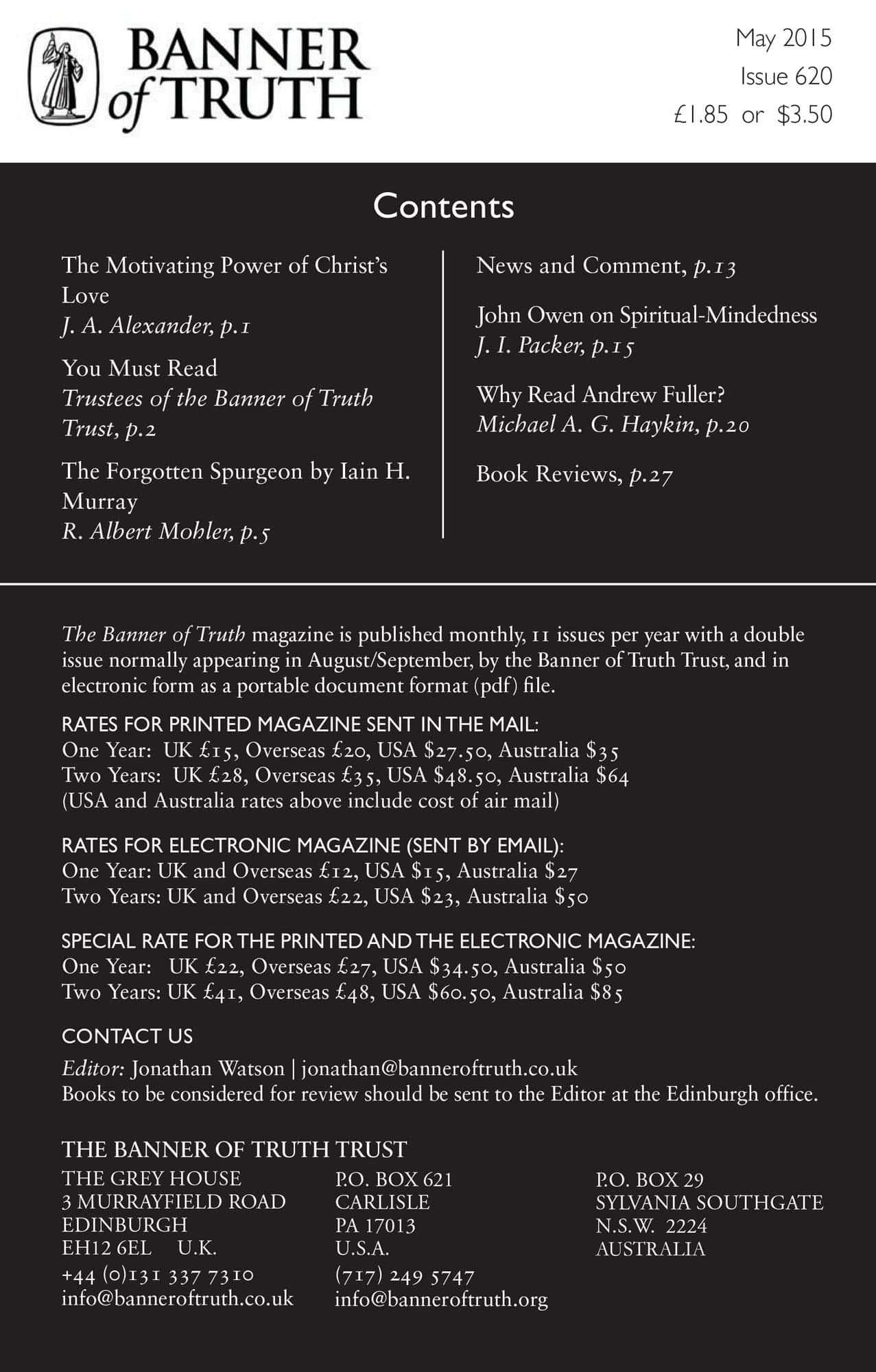 Subscribe to the Banner of Truth Magazine for 11 edifying issues each year (including summer double issue).