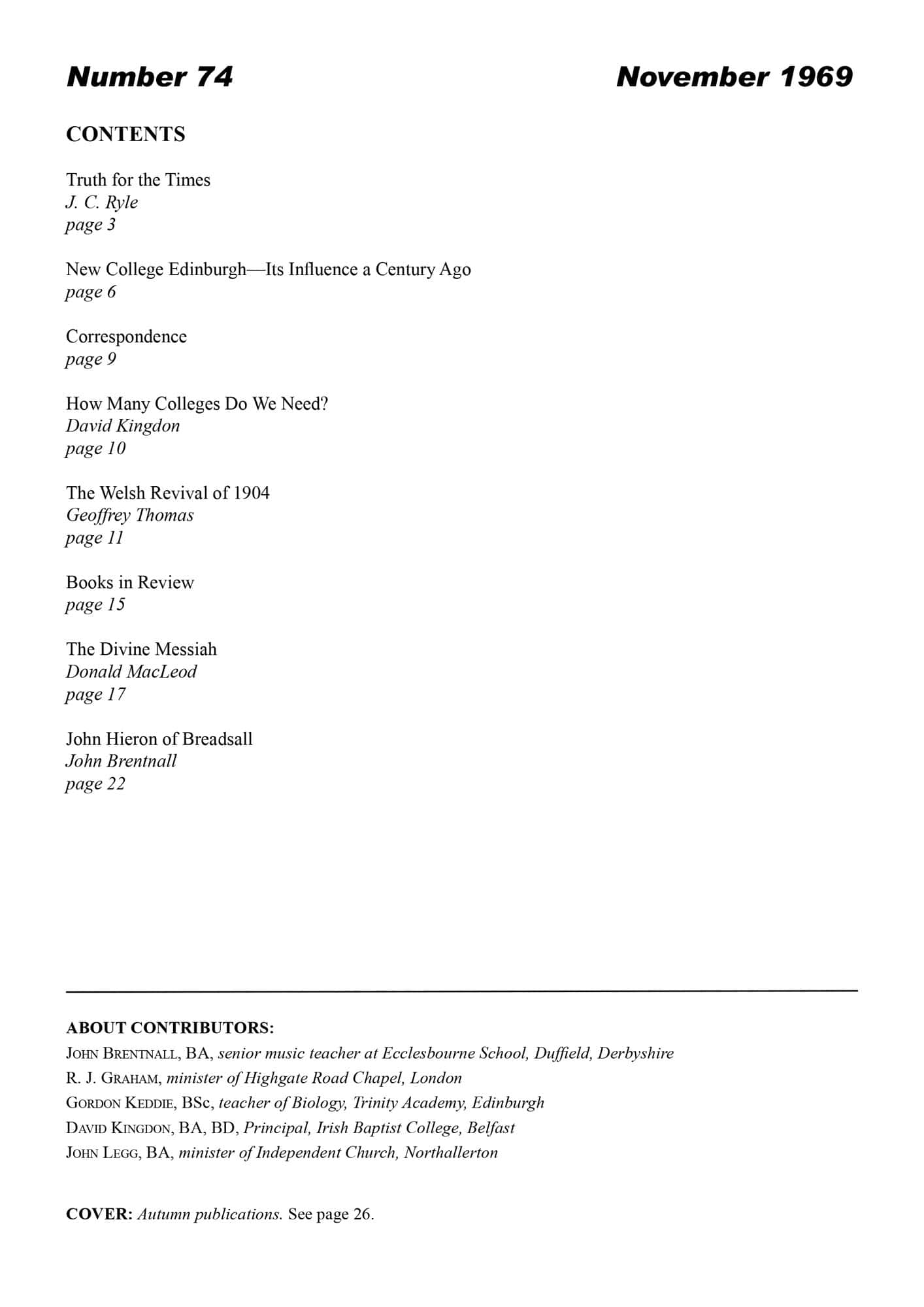 | New College Edinburgh: its influence a century ago — Murray, Iain H | 6-11 |