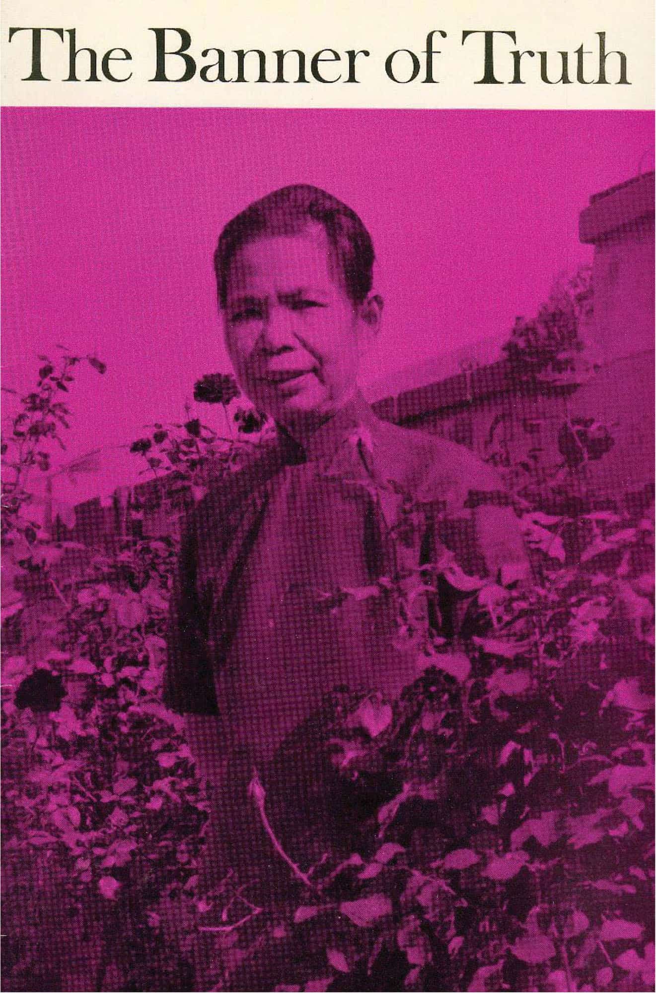 This binder holds two years’ issues and is made of stout board, with wire rods to hold the magazine in place. The name ‘Banner of Truth’ is stamped in gold on a black panel on the grey cloth.