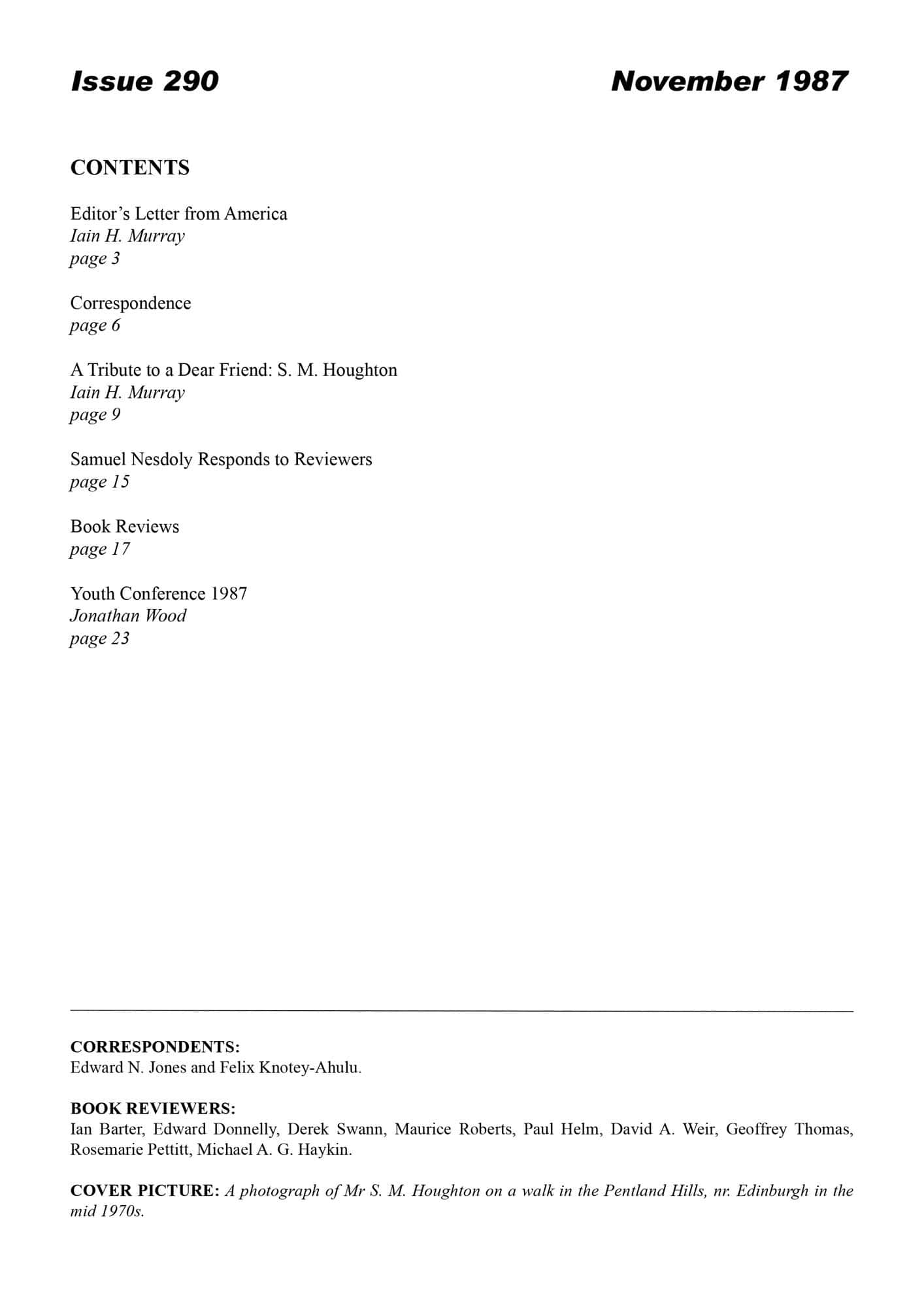 | Tribute to a Dear Friend: S. M. Houghton — Murray, Iain H | 10-20 |