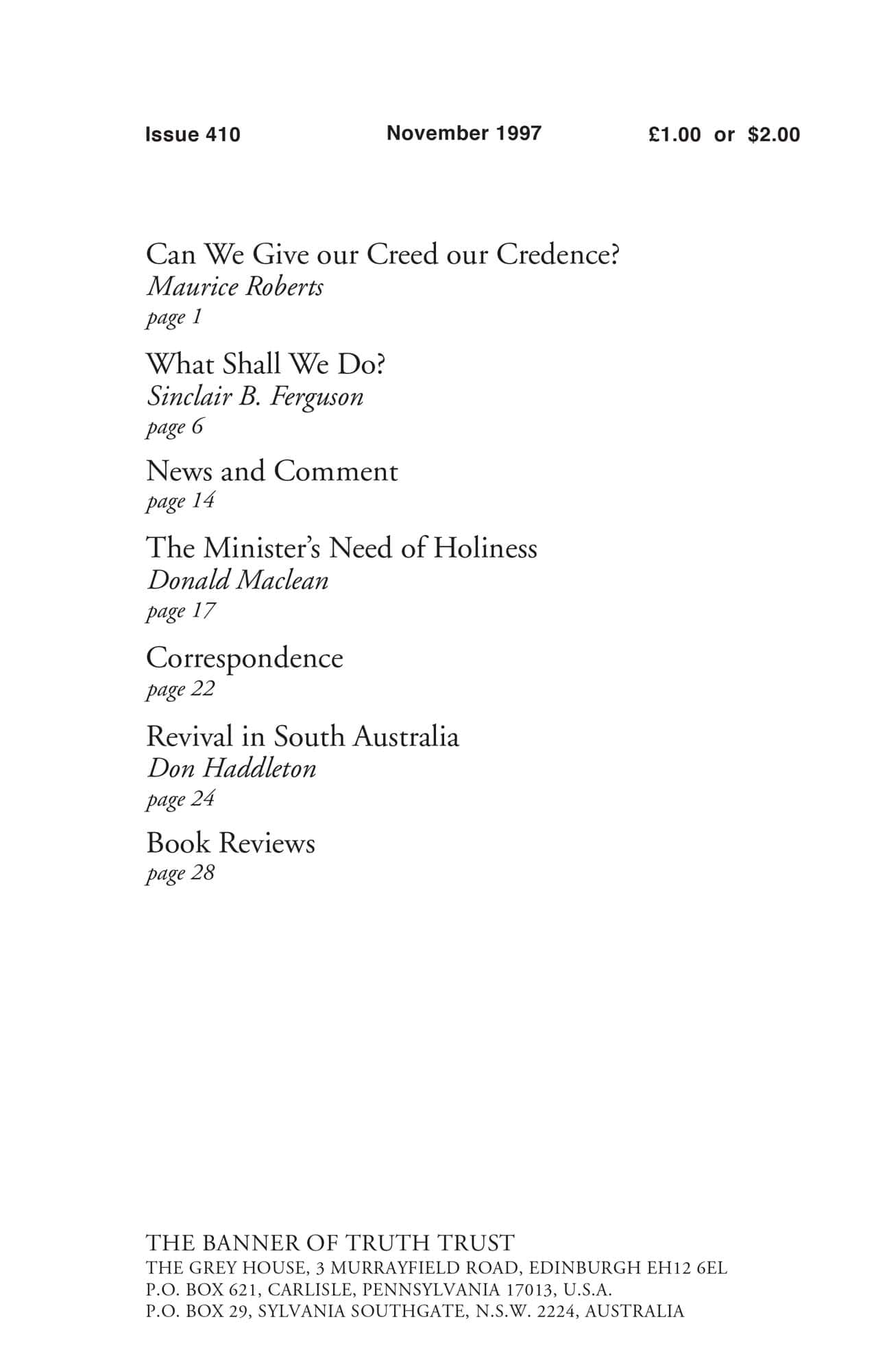 | Minister’s Need of Holiness — Maclean, Donald | 17-21 |