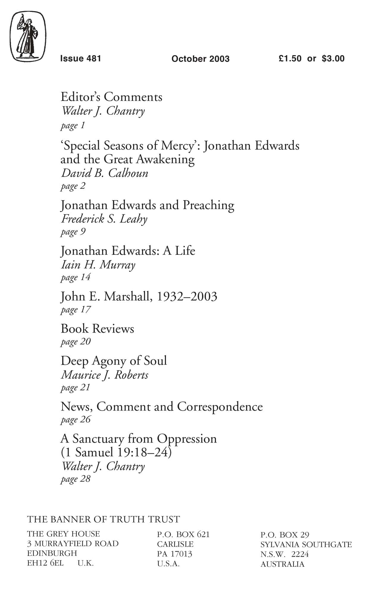 | Special Seasons of Mercy’: Jonathan Edwards and the Great Awakening — Calhoun, David B | 2-8 |