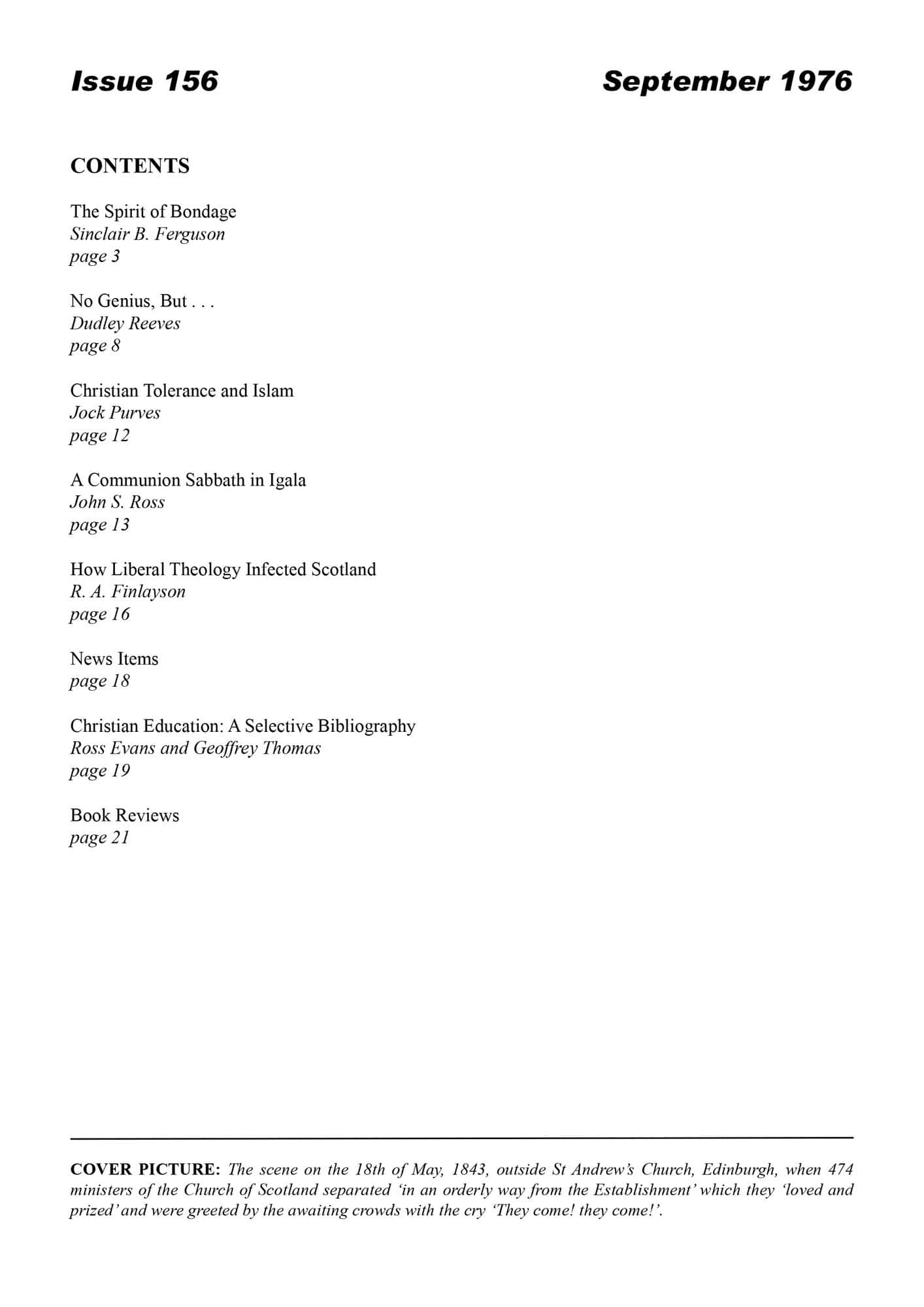 | How Liberal Theology infected Scotland — Finlayson, R A | 24-28 |