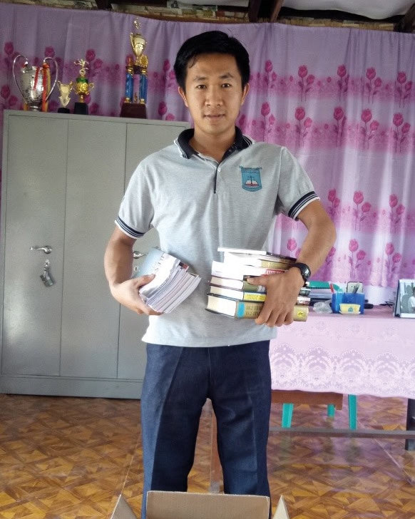 Theological student Samuel Van Sui Uk receives books to aid his studies