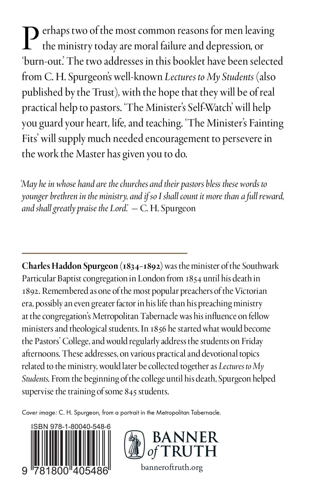 Perhaps two of the most common reasons for men leaving the ministry today are moral failure and depression, or ‘burn-out.’ The two addresses in this booklet have been selected from C. H. Spurgeon’s well-known Lectures to My Students (also published by the Trust), with the hope that they will be of real practical help to pastors. ‘The Minister’s Self-Watch’ will help you guard your heart, life, and teaching. ‘The Minister’s Fainting Fits’ will supply much needed encouragement to persevere in the work the Master has given you to do.