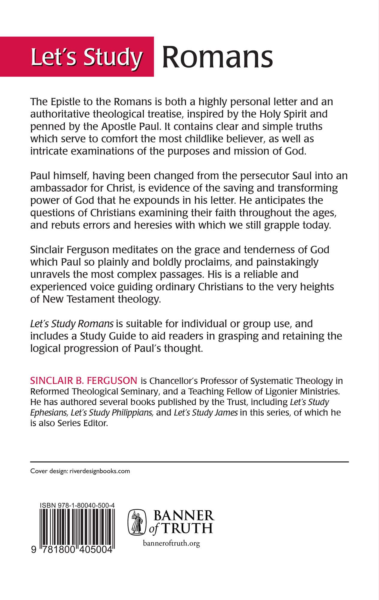 Let’s Study Romans is the newest addition to Banner of Truth’s Let’s Study series. In this volume, Sinclair B. Ferguson furthers the series’ goal of providing faithful, accessible biblical exposition for laypeople, small groups, and families. He writes as a pastor beside you with an open Bible—guiding you gently and clearly through Paul’s letter to the Romans.