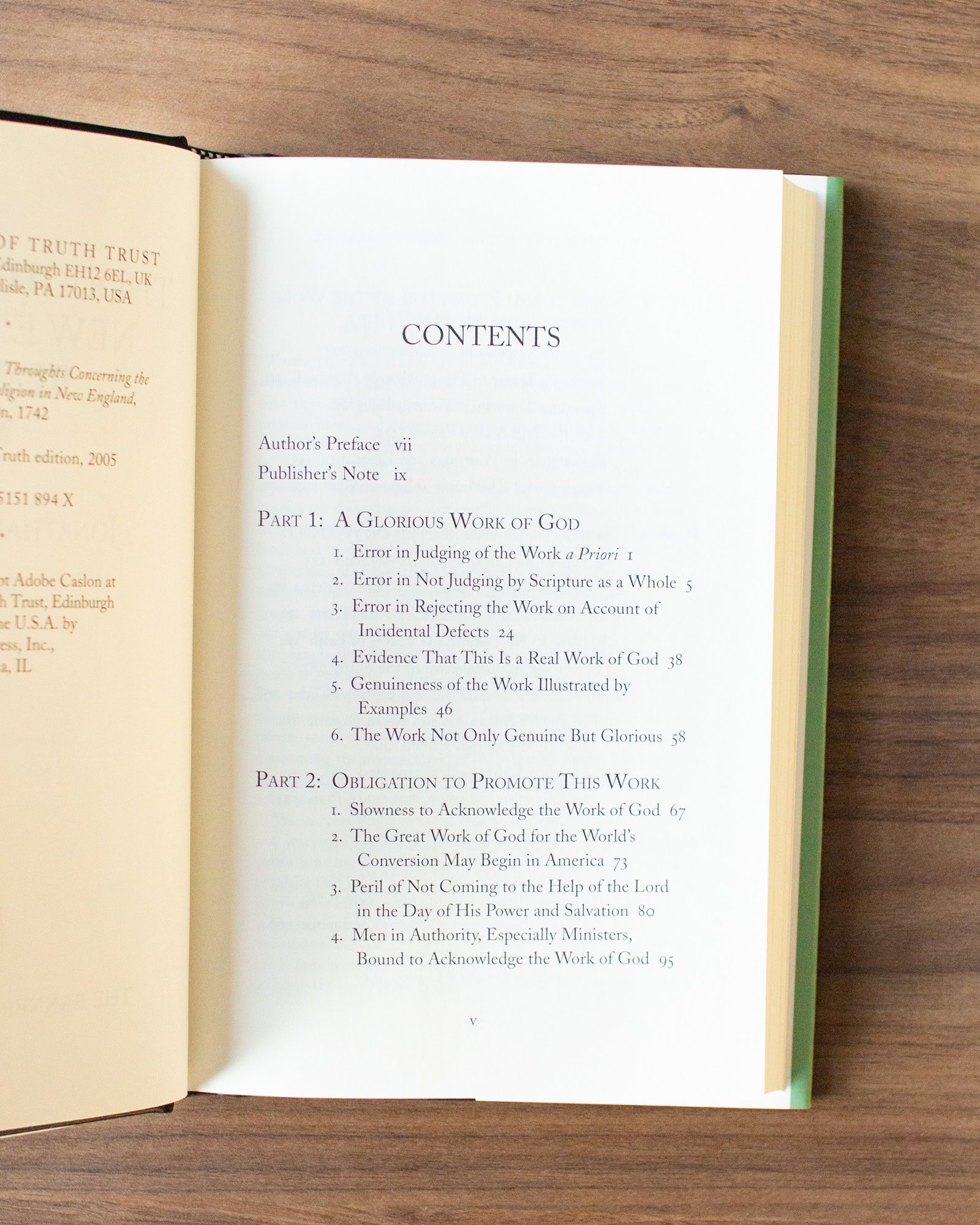 In this book, he enlarges and develops the arguments put forward in his The Distinguishing Marks of a Work of the Spirit of God, with the aim of defending this unprecedented period of revival against the unjust words of its critics and the overzealous excesses of its friends, both of which, he feared, would quench the Spirit and put a stop to the blessing.