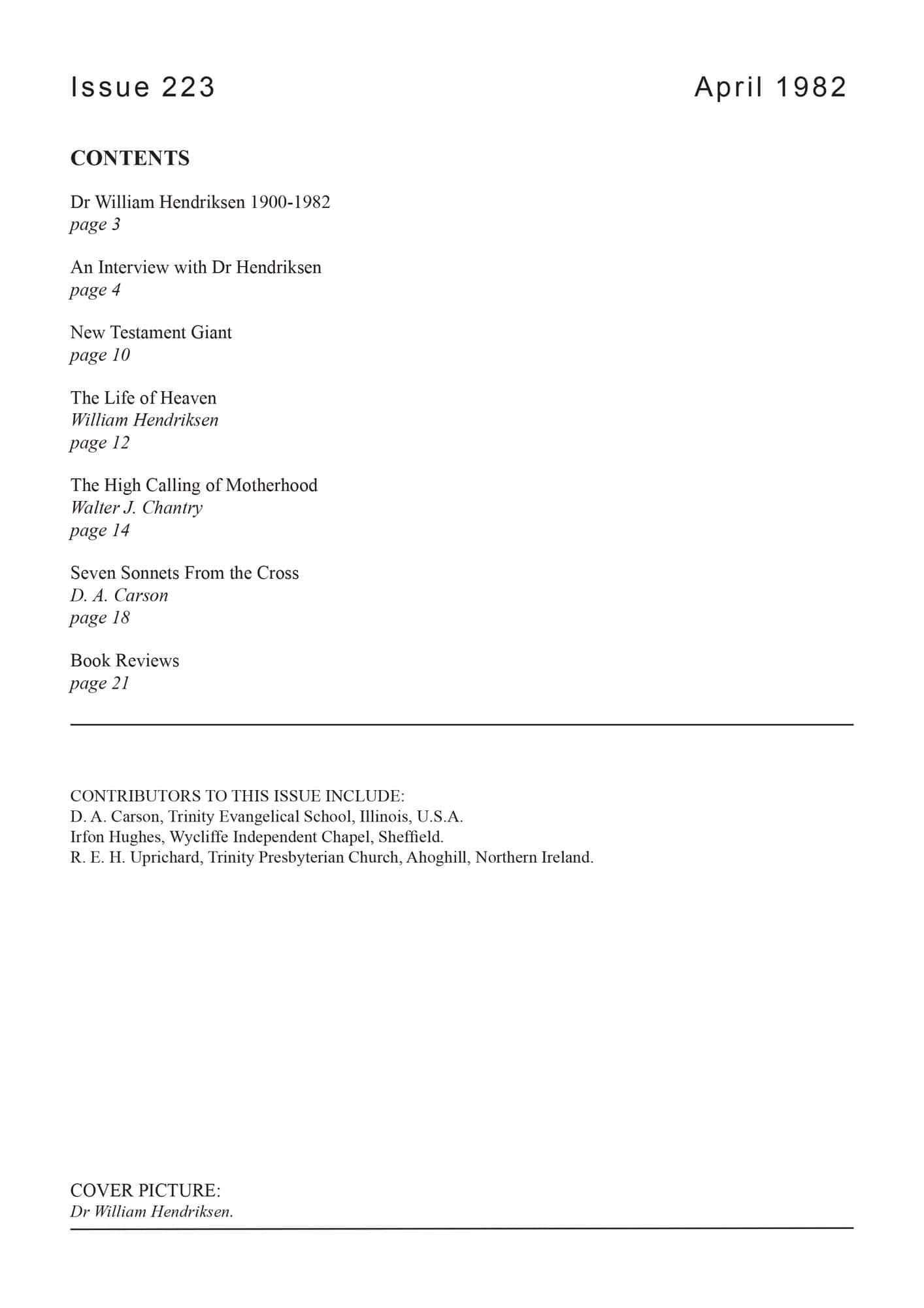 | High Calling of Motherhood — Chantry, Walter J | 17-22 |
