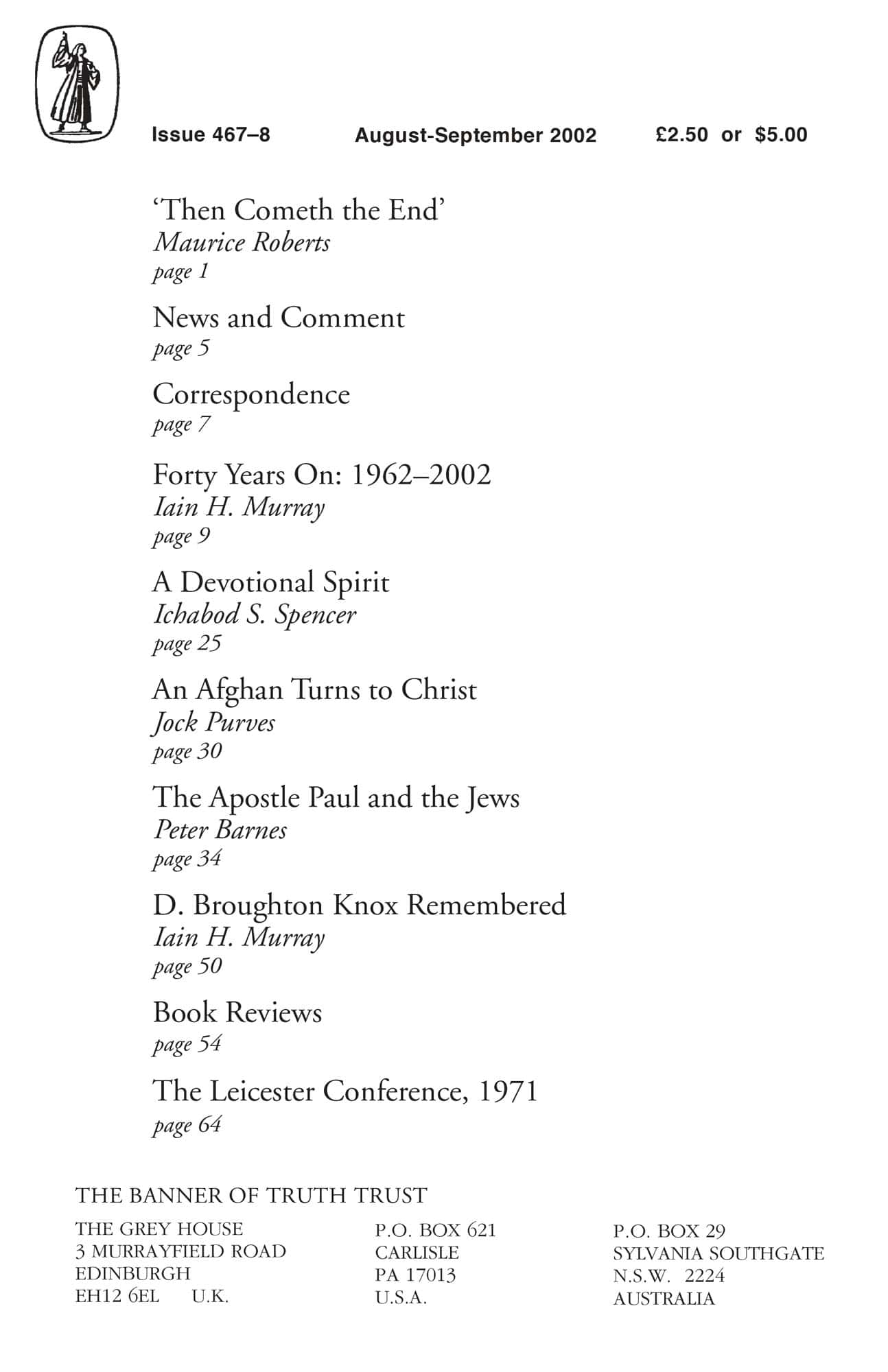 | Forty Years On: 1962-2002 Leicester Ministers Conference — Murray, Iain H | 9-24 |