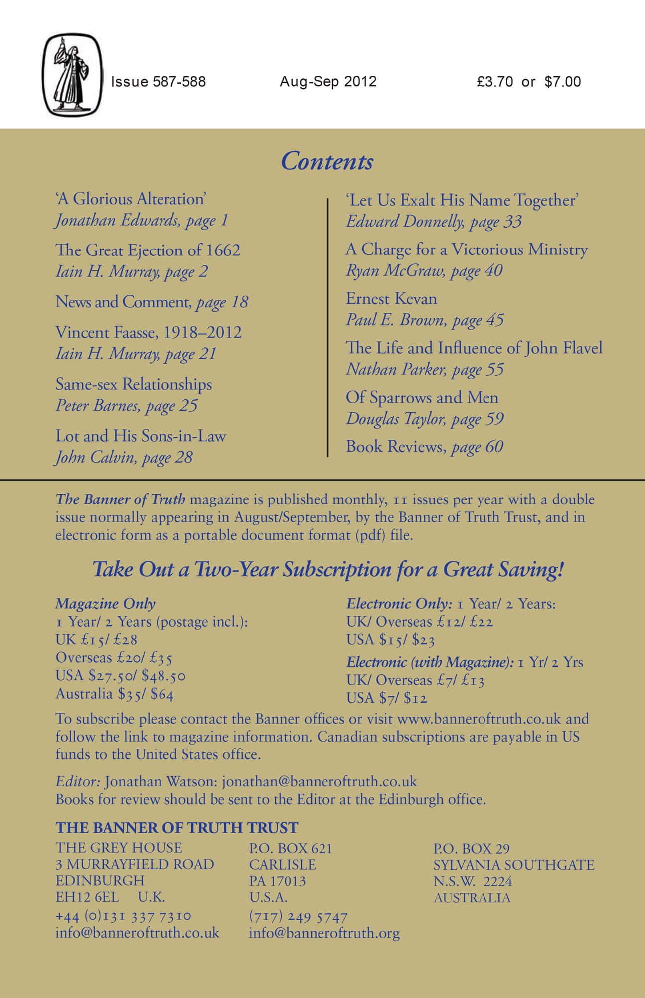 Subscribe to the Banner of Truth Magazine for 11 edifying issues each year (including summer double issue).
