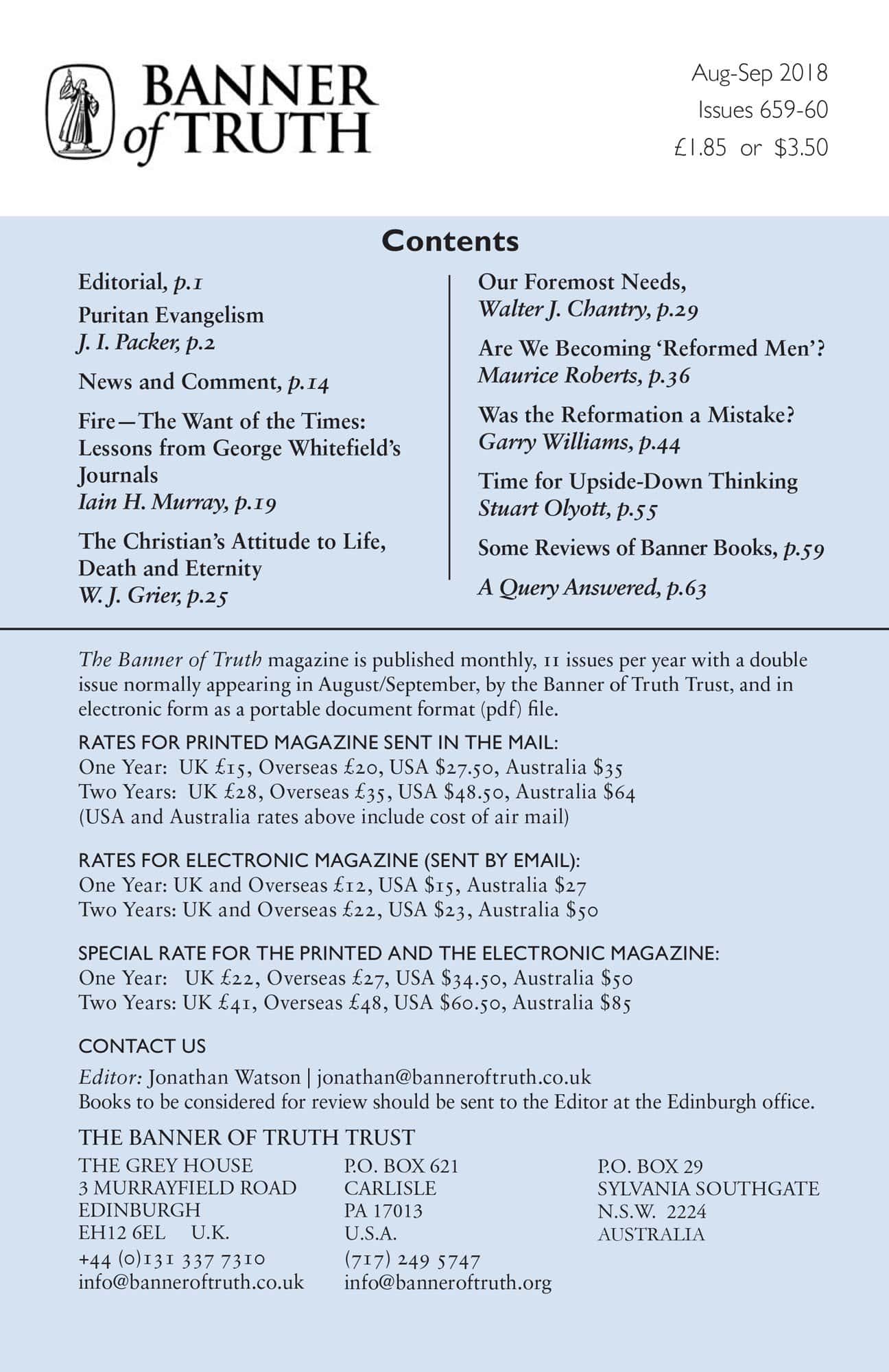Subscribe to the Banner of Truth Magazine for 11 edifying issues each year (including summer double issue).