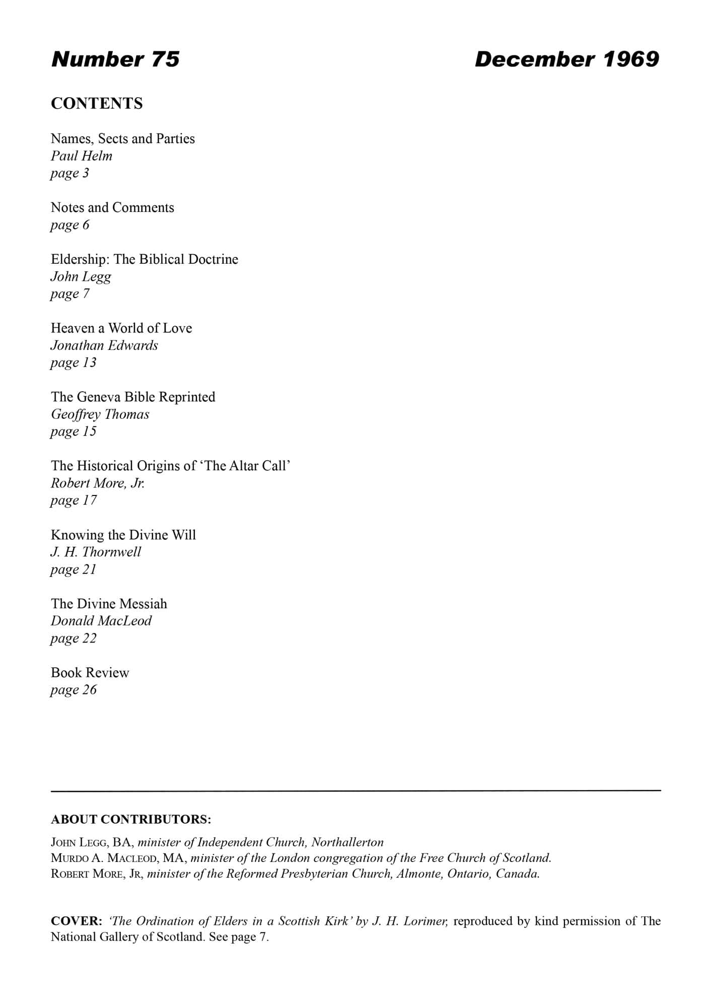 Subscribe to the Banner of Truth Magazine for 11 edifying issues each year (including summer double issue). Table of Contents Prayer: Some Suggestions — Barnes, Peter 1-3 Penitence of Josiah — Chantry, Thomas 6-12 Duty, Benefits and the Proper Method of Religious Fasting — Miller, Samuel 12-34 Response to the Decision of the gereral assembly […]