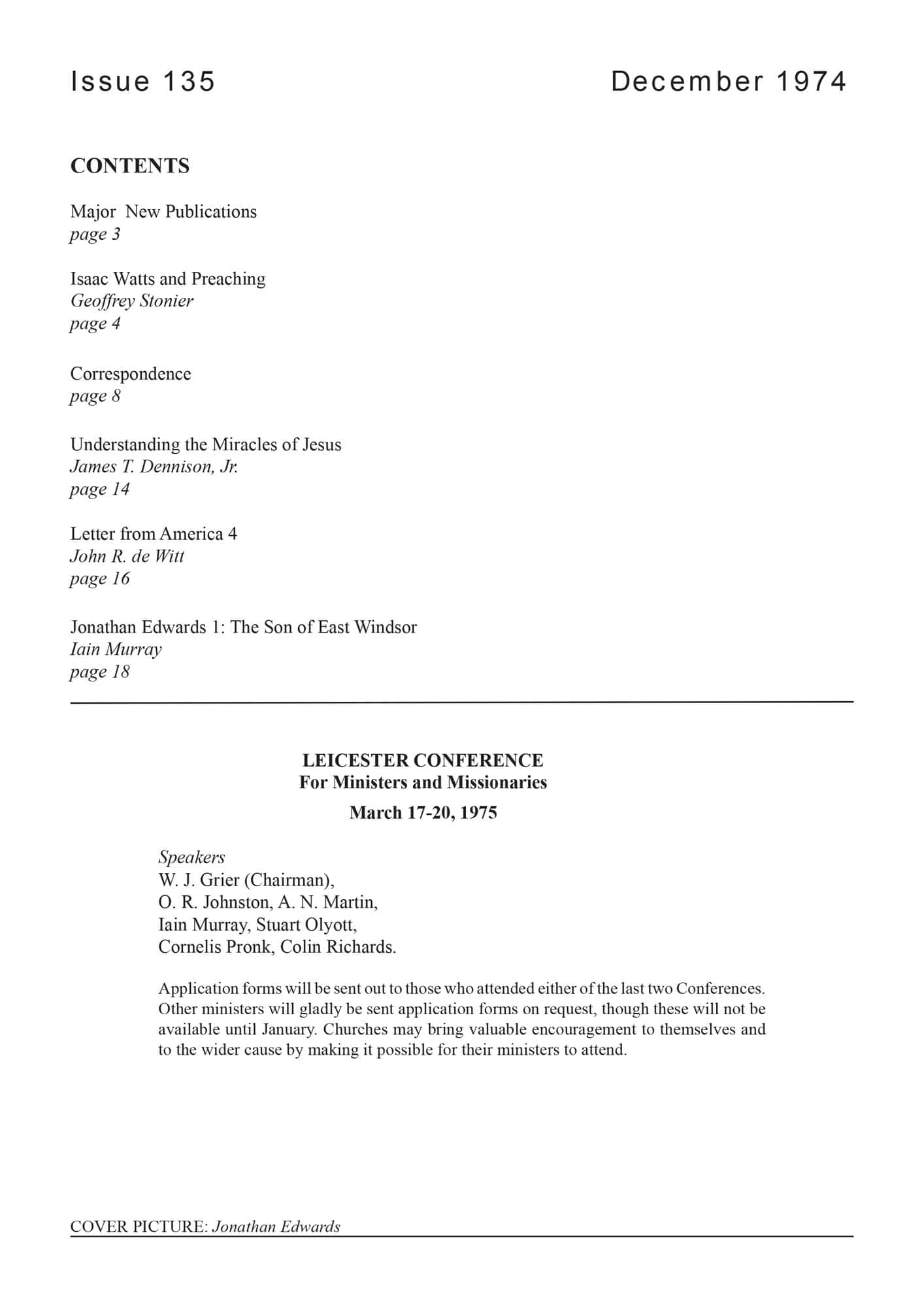 | Isaac Watts and Preaching — Stonier, Geoffrey | 3-8 |